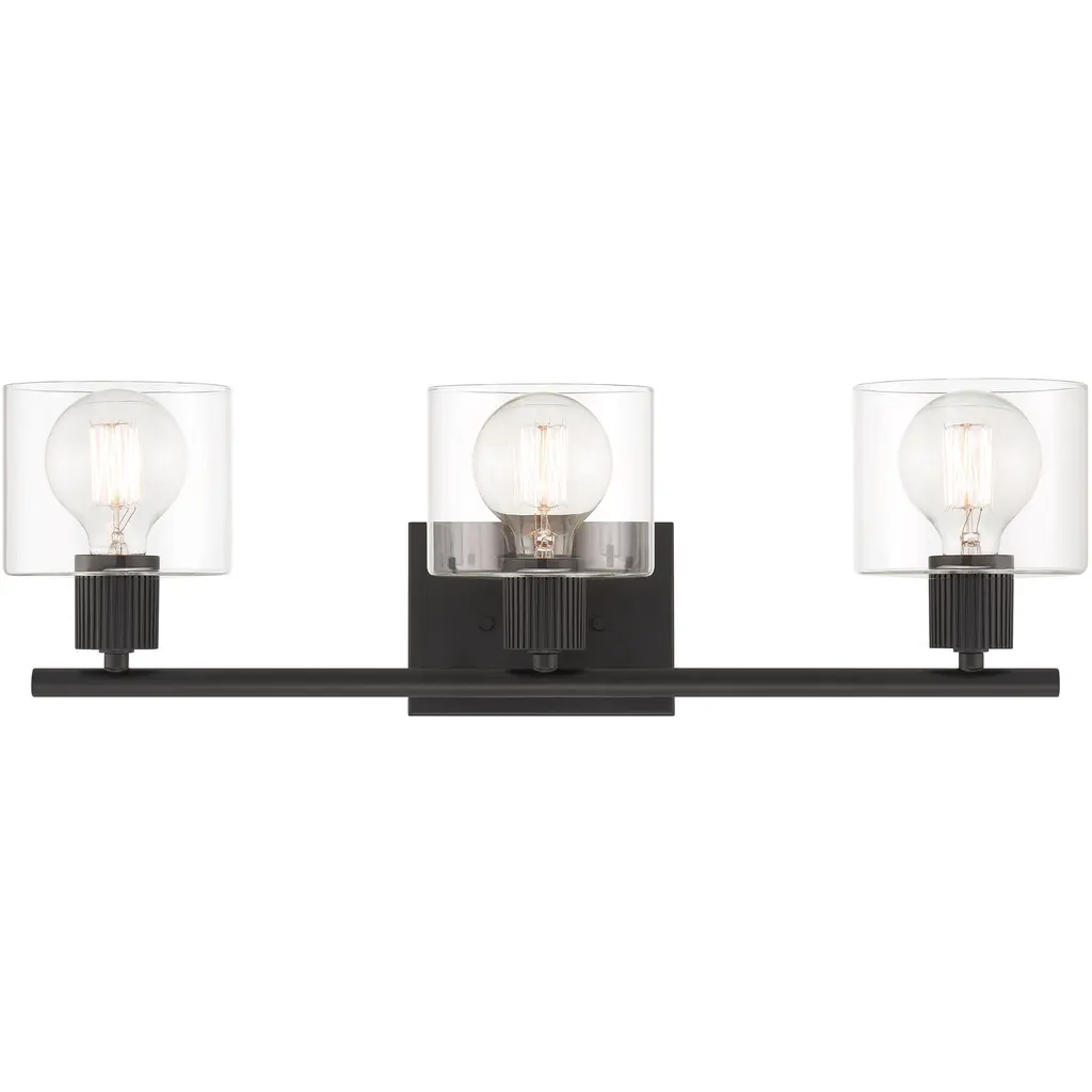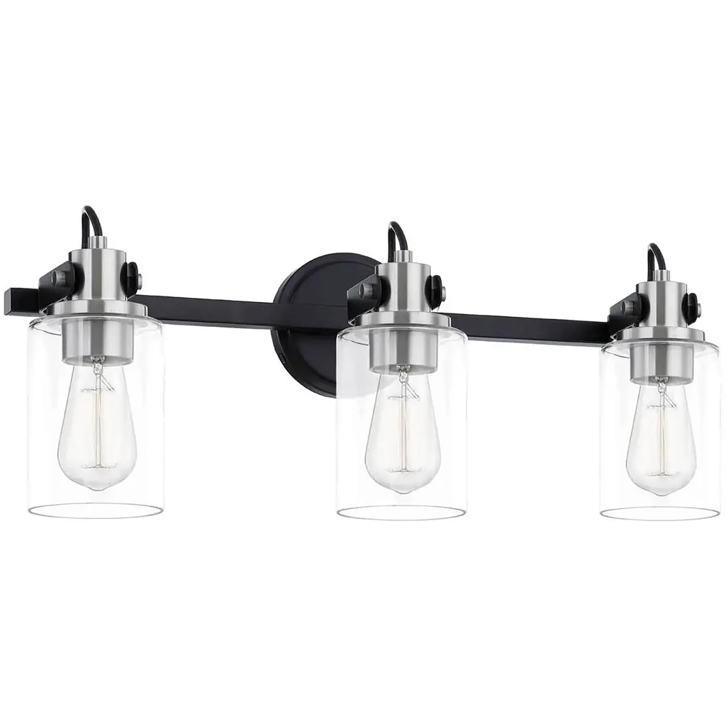 Brooklyn 3-Light Bath Bar - Clear Glass - Matte Black w/ Brushed Nickel Accents Finish
