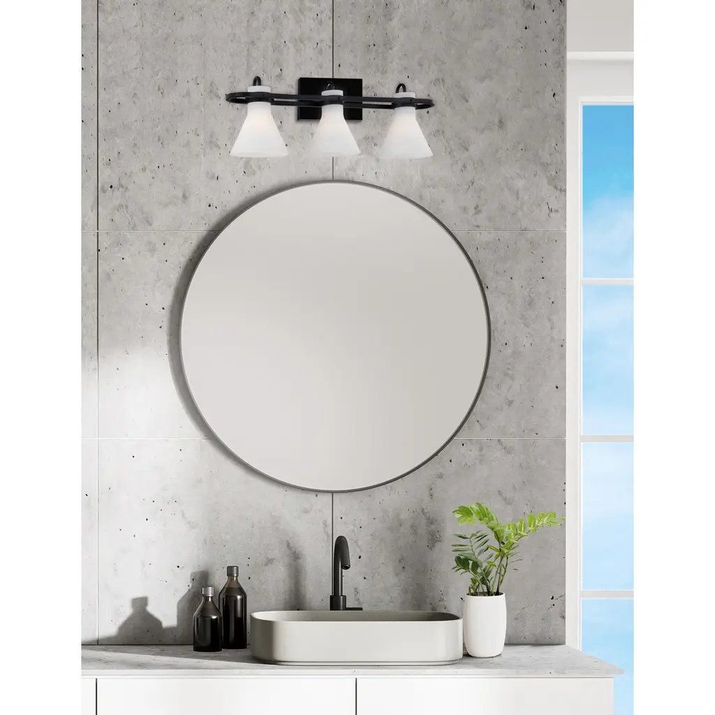 Ludlow 3-Light Bath Bar - Opal Glass - Matte Black Finish