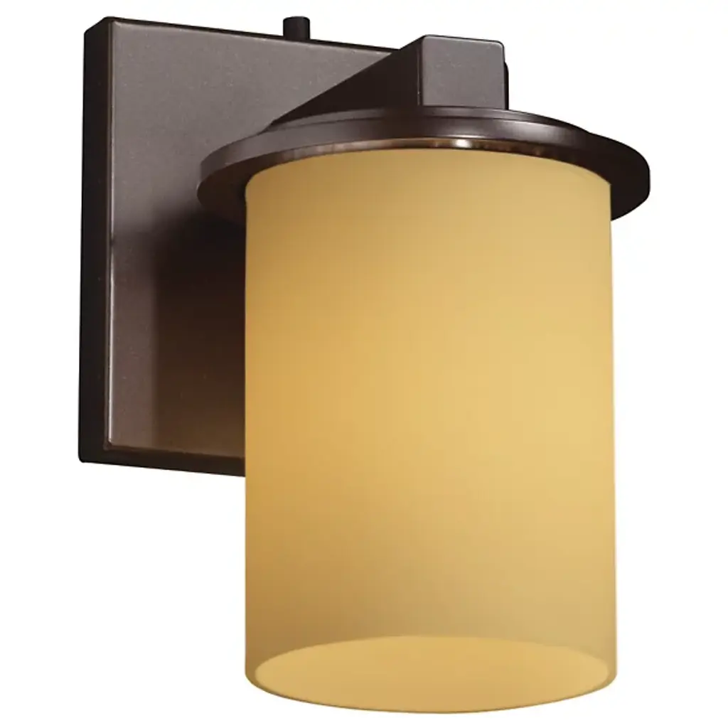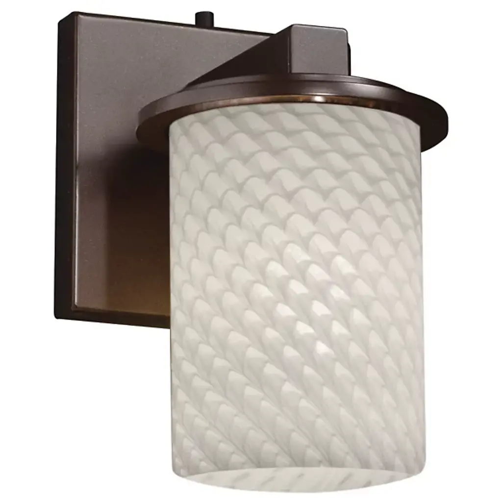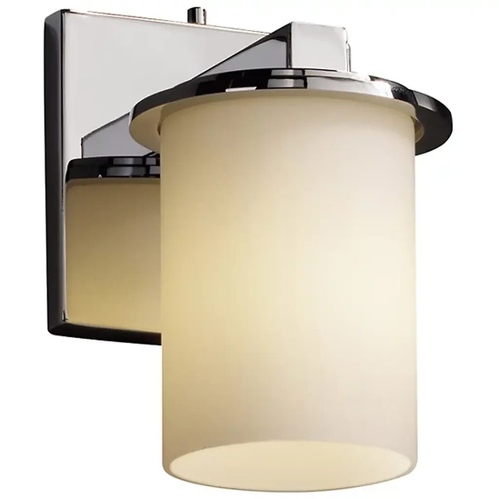 As its name would imply, the Fusion Dakota Wall Sconce by Justice Design Group is a creative union of artisan glass and polished metal into one stunning design. Its glass body has a classic cylindrical shape that stands on a stepped, metal-finished base which then connects to a square wall plate. Whether installed as an uplight or downlight, the fixture’s open top (or bottom) allows light to have a direct, undiffused spill in addition to a refractive glow from the surrounding shade.