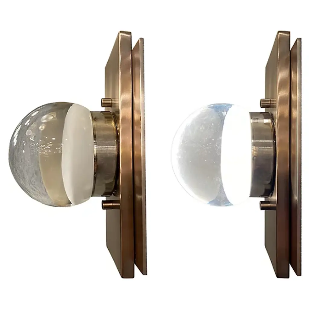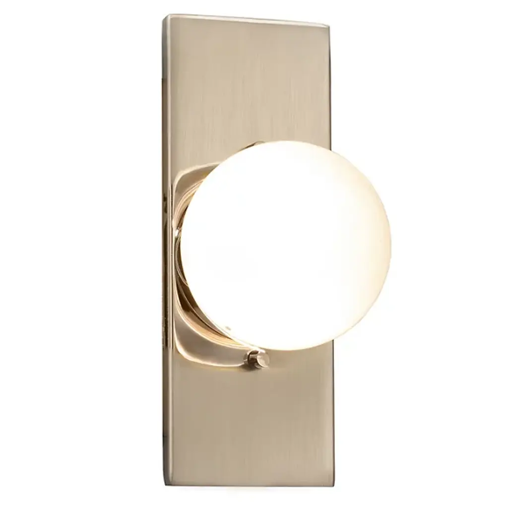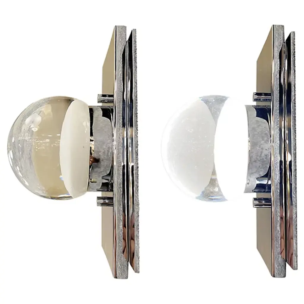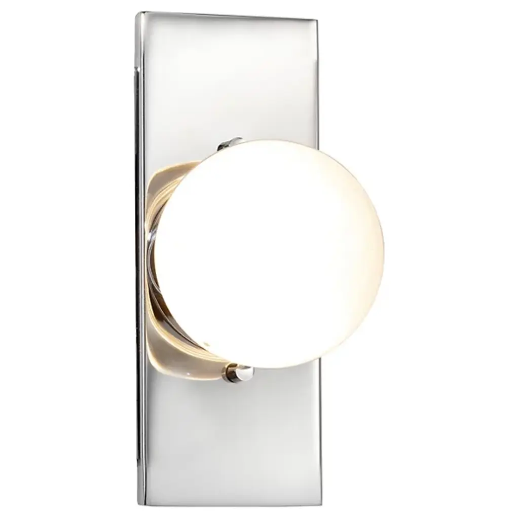 A modern statement piece with a touch of glamour. From a layered Metal frame and backplate, a round Artisan Glass shade is mounted front and center to lend its beautiful, diffused illumination in the Fusion Luna LED Wall Sconce. This wall fixture features the flexibility of being able to be mounted vertically or horizontally. The backplate has a mirror-like finish that contributes a luxurious aesthetic to this piece, making it a great option for modern or contemporary homes. This wall sconce looks best as accent lighting to improve the ambiance with a glamourous look and feel. Place it in the living room, bedroom or foyer to make the most of its style.