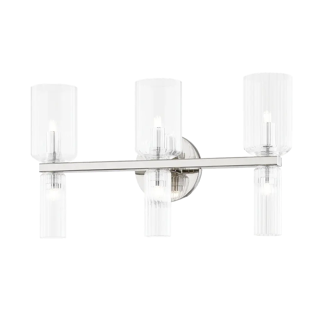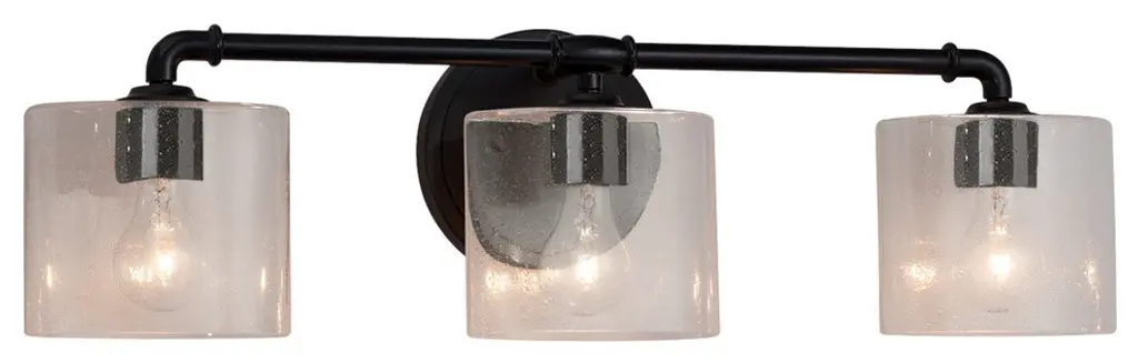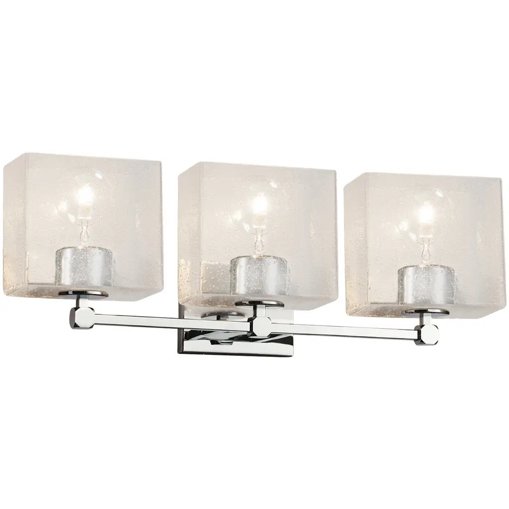 Fusion Rondo 3-Light Bath Bar, Seeded Shade, Polished Chrome, Led