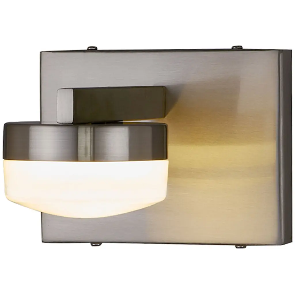Fusion Puck 1-Light LED Wall Sconce - Matte Black Finish with Brass Accents - Opal Glass Shade