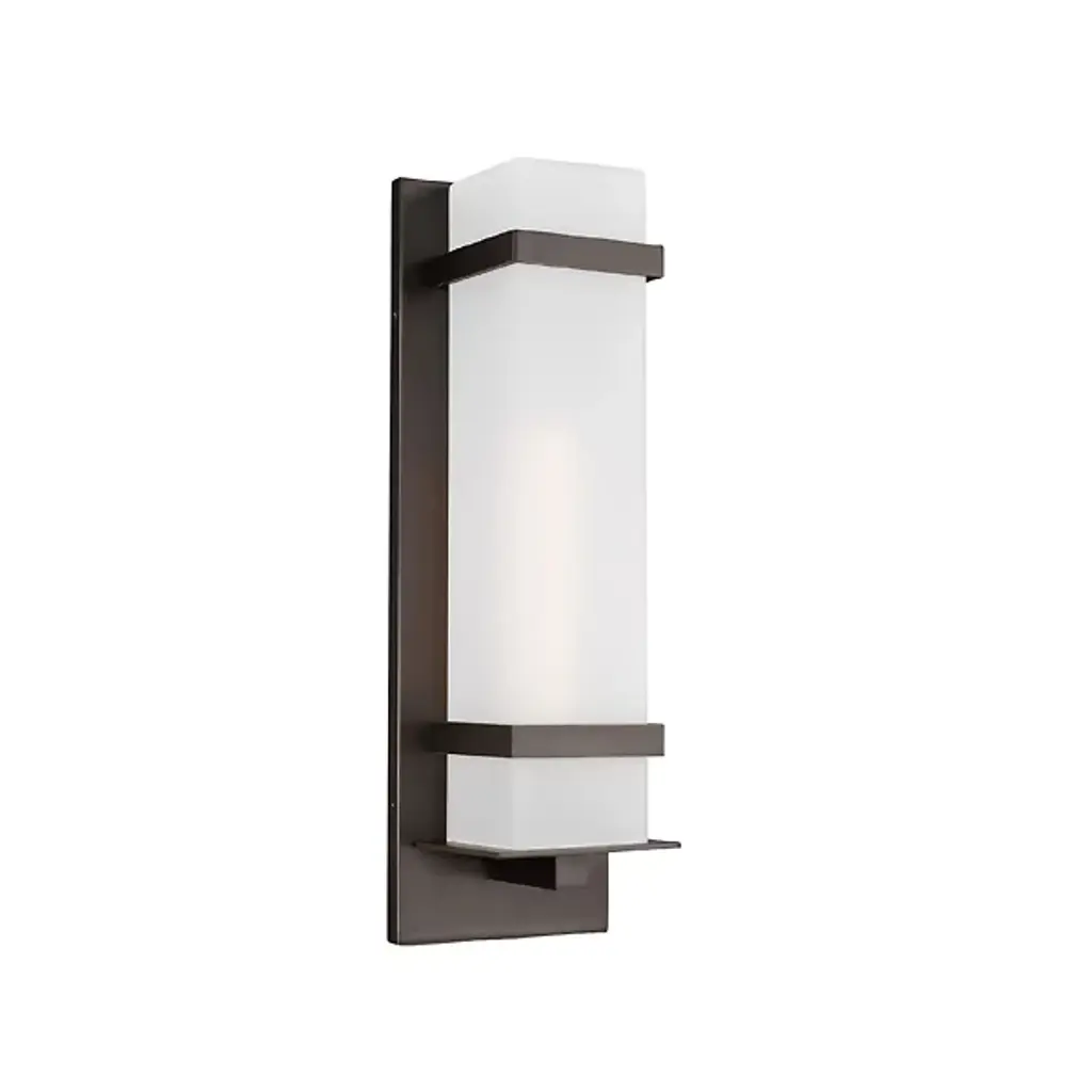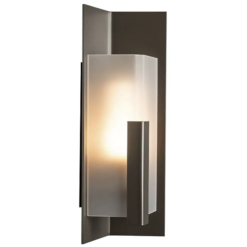 A striking and unique example of contemporary design. The Fusion Pacific LED Outdoor Wall Sconce by Justice Design is a tall and impressive piece that combines the finest grade materials into an exterior fixture that will help to define your aesthetic. Most notable in this composition is its tall square Glass shade, which has been made by the hand of a skilled artisan. To bring out the natural beauty of its Glass elements, this fixture is framed in rugged Metal that is accented with a square rod piece and matching backplate. Perfect for flanking a front door or placed in the corner of a dark patio.