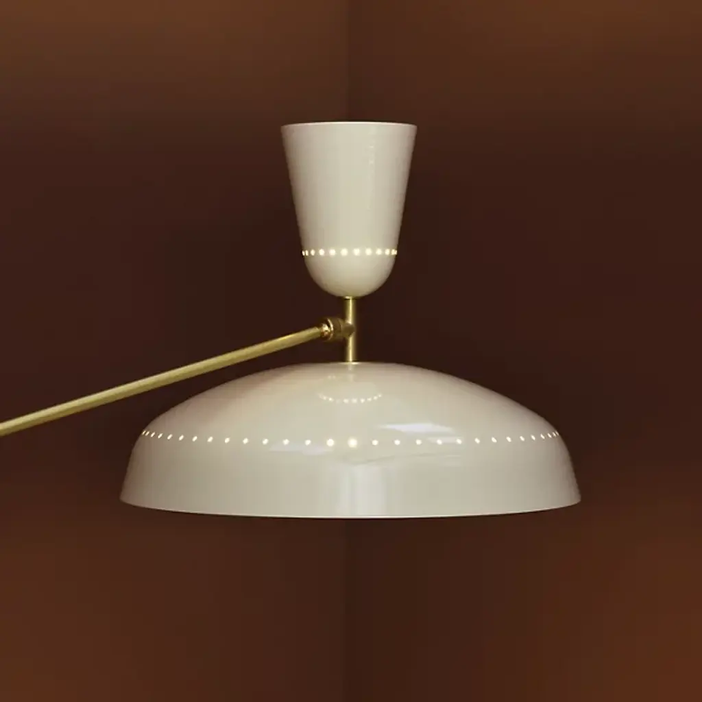 Presented by Sammode, the G1 Wall Sconce is a remarkable lighting fixture designed by Pierre Guariche in 1951. This sconce features an embossed metal lampshade and two light sources that provide direct and indirect lighting. Its ball counterweight and adjustable arm make it easy to direct the light exactly where you want it, while high-quality materials ensure durability and longevity. The G1 Wall Sconce is an elevated addition to your space, providing light and luxury in tandem.