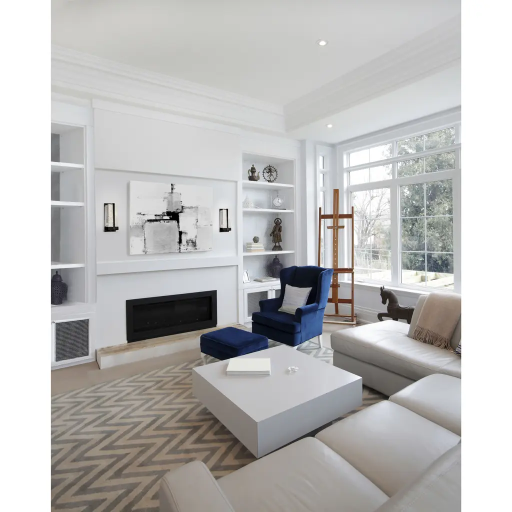 This intensive LED wall sconce is one of a kind. Build with heavy gauged steel, plated in two finishes brushed nickel or polished chrome. With a solid rectangular bubble encased crystals which sits directly above LED board. When lit the crystal expels the light with beautiful patterns on the wall and around the room. Equipped with our powerful 120V AC LED technology