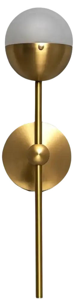 The 1950s charm of the Galassia wall light, available with one bulb or two, orientable to the left or right, remains unchanged thanks to the combination of the brass with galvanic gilding on the structure and the white triplex blown glass sphere. A priceless collection that enriches any space with a sophisticated retro touch. Double emission wall lights for indoor application. LED lamp included.