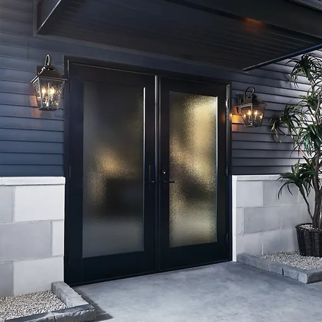 Gritty, hard-edged, and subtly inviting. The Galena Outdoor Wall Sconce by Visual Comfort Studio, formerly known as Sean Lavin, is an Industrial tinged contemporary marvel of outdoor wall lighting, filling your space with the rugged splendor of London street lanterns. Its Stainless Steel frame is finished in Sable or Textured Black for a grimy aesthetic, while the Glass panes that comprise the shade offer both texture and grace. With several candelabra bulbs encased within the shade, this piece brings old fashioned style to the modern age.
