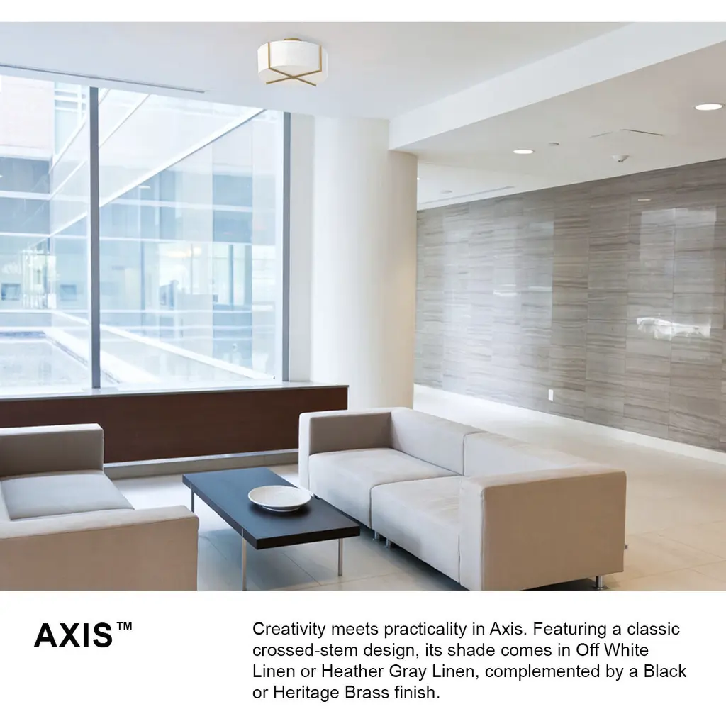 Merging modern and classic elements, the Galerie collection offers a selection of ceiling and sconce fixtures with unique details that effortlessly balance a variety of spaces with form and function. Creativity meets practicality in Axis. Featuring a classic crossed-stem design, its shade comes in Off White Linen or Heather Gray Linen, complemented by a Black or Heritage Brass finish. This LED sconce is fully dimmable and ADA compliant.