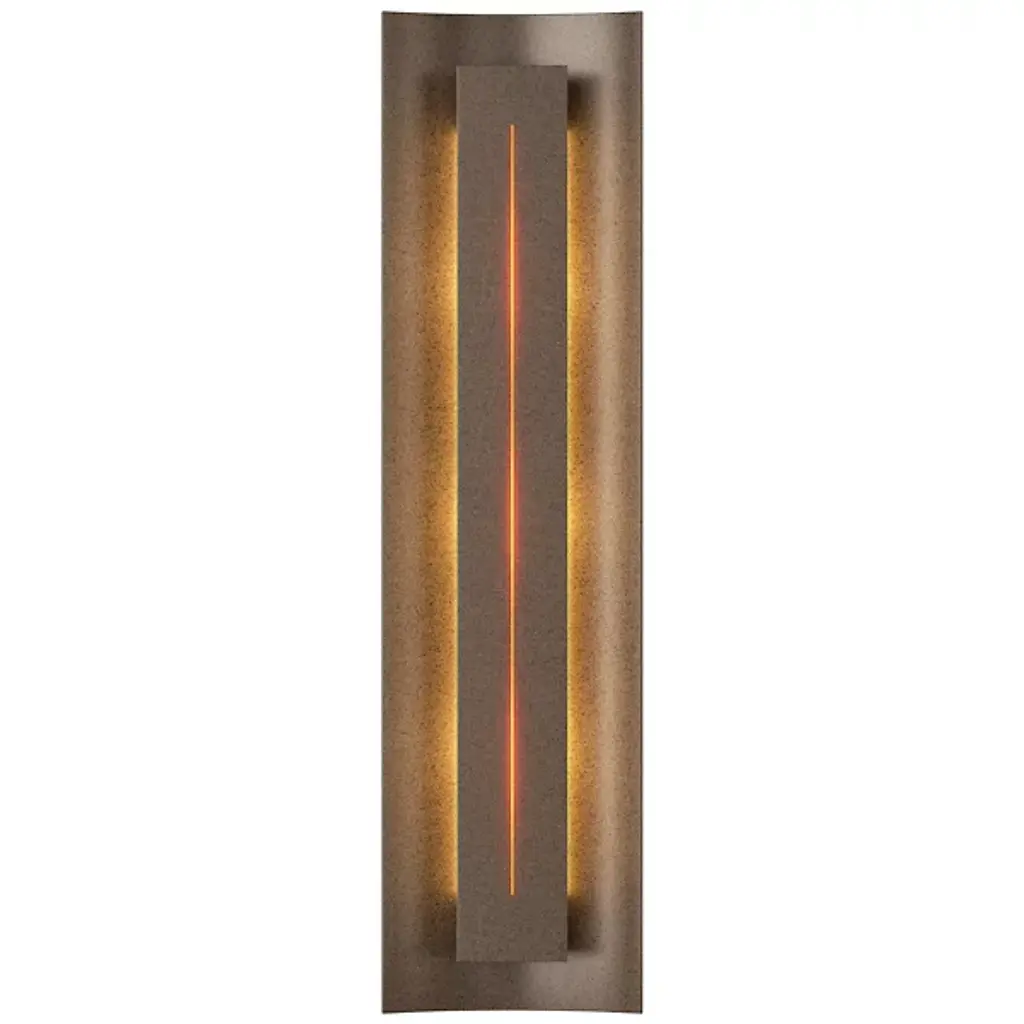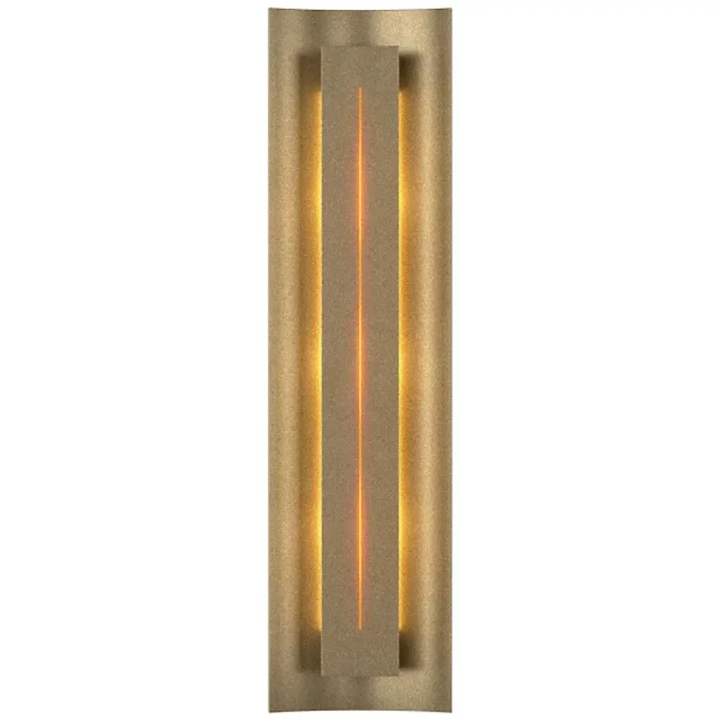 The Hubbardton Forge Gallery Wall Sconce With 3.1 In. Projection provides rich, warm highlighting in a design that pairs simple lines with handcrafted beauty. The Gallery Sconce With 3.1 In. Projection features hand-forged wrought iron, a colored bar of glass that diffuses the light, and translucent finishes.