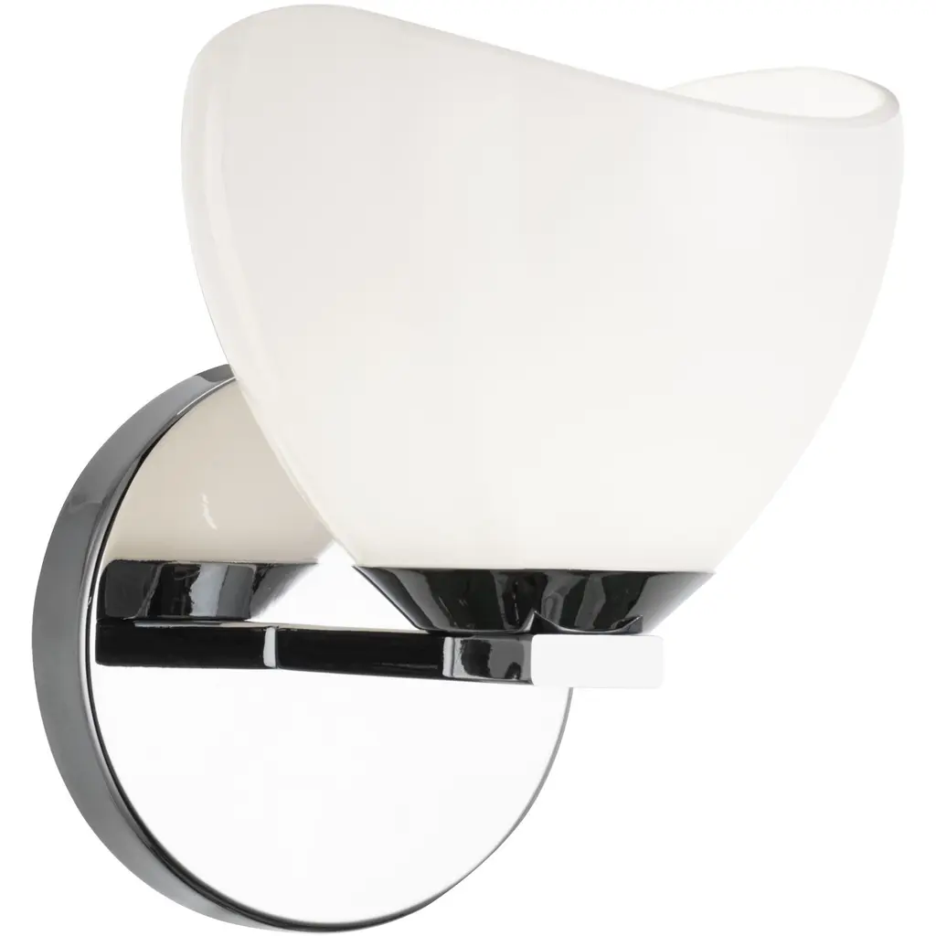 Galvaston 1 Light BathStyle: ModernRated: DryPower: HardwireLamping: 1 light(s). 3W LEDBulb(s) included.Finish: Polished NickelConstructed of Heavy Gauge Steel in a Polished or Satin Nickel finish the Galvaston Bath Collection offers Inverted Cone Shaped Frosted White Glass and LED bulbs included.