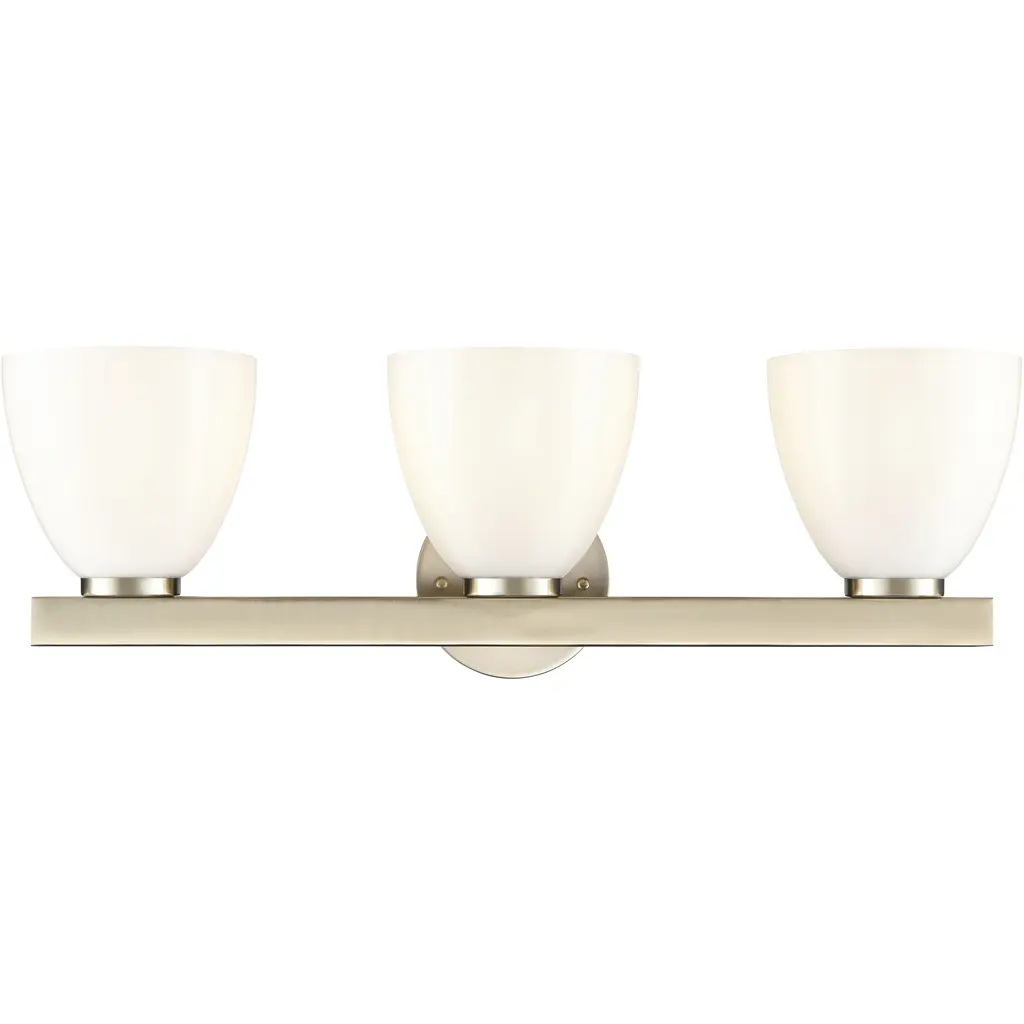 Galvaston 3 Light BathStyle: ModernRated: DryPower: HardwireLamping: 3 light(s). 3W LEDBulb(s) included.Finish: Polished NickelConstructed of Heavy Gauge Steel in a Polished or Satin Nickel finish the Galvaston Bath Collection offers Inverted Cone Shaped Frosted White Glass and LED bulbs included.