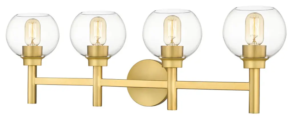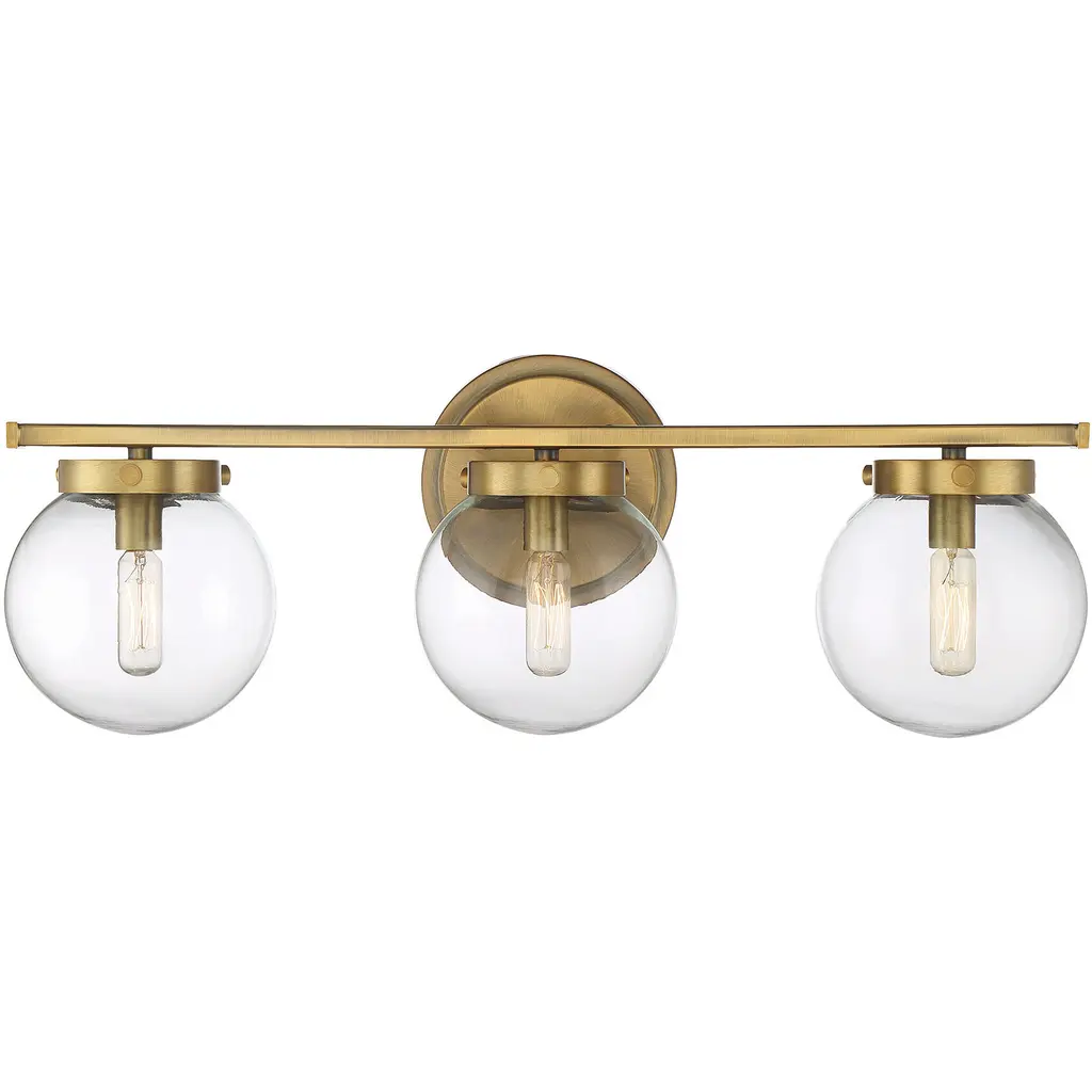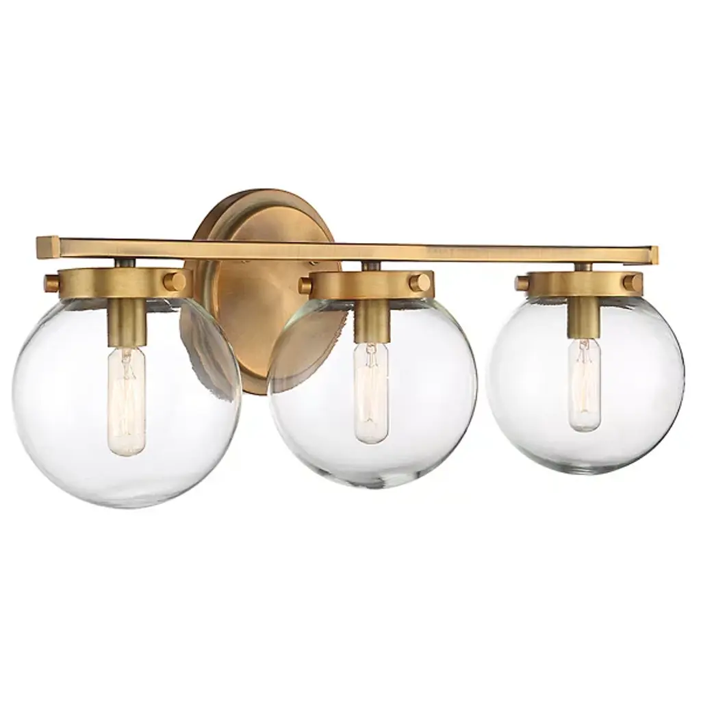 The Visual Comfort Modern, formerly known as Tech Lighting, Gambit Triple Wall Sconce has a warm contemporary style with a twist of retro. The high contrast in materials and tones elevates the piece, the transparent glass spheres showcasing the antique reproduction LED bulbs. The contrast in shapes also offers intriguing visual interest, the many right angles in the metalwork balanced with three perfect spheres of borosilicate glass.