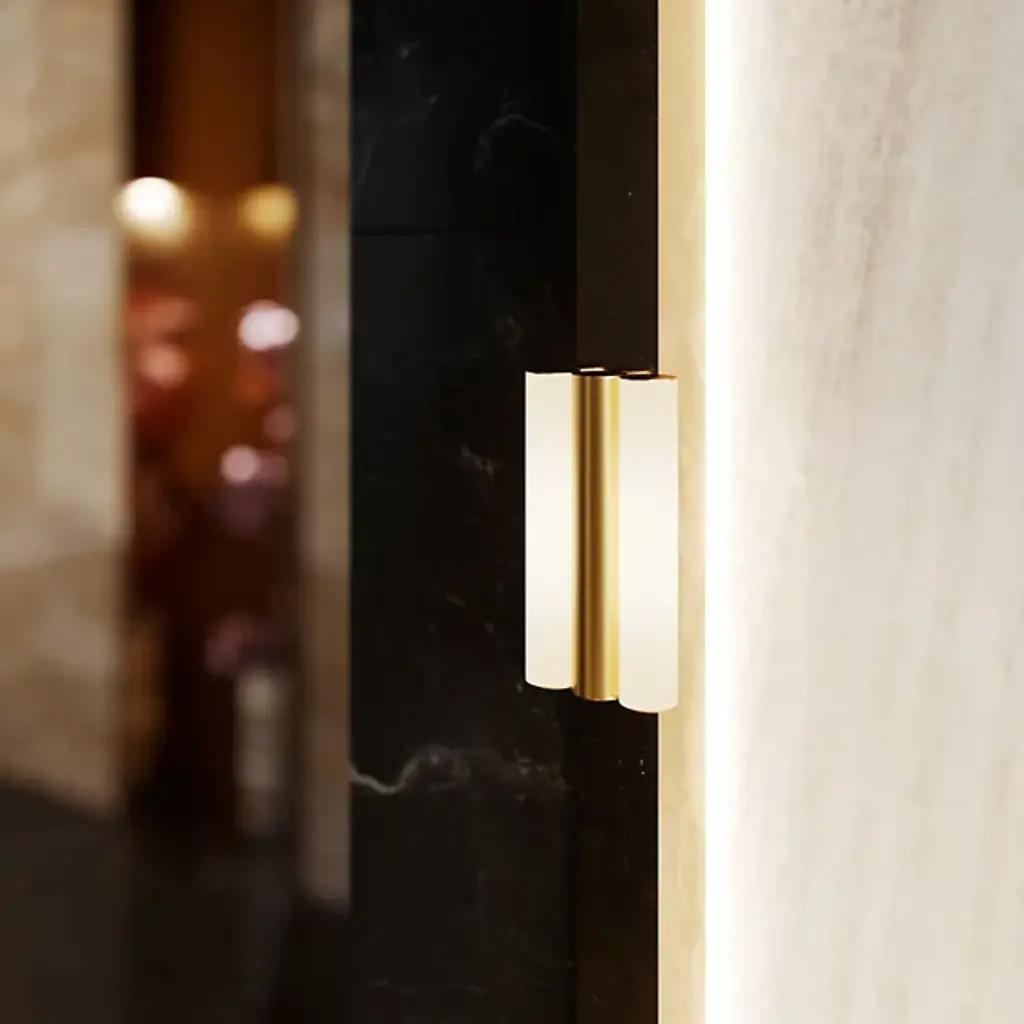 Striking simplicity. The Gamma LED Wall Sconce from CVL Luminaires draws the eye with repetition and treats with an elegant contrast of materials. It’s a piece by Sylvain Willenz, a designer creating graphic designs that are simple yet instantly recognizable. Willenz highlights the beauty of the cylinder. Polycarbonate tubes flank a central solid brass one for an elegant look even with the lights off. LED light flows through the polycarbonate diffuser, filling it from edge to edge for an attractive look. The LED light enhances the space around it as it creates a bright aura, seen as a soft glaze on the back wall.