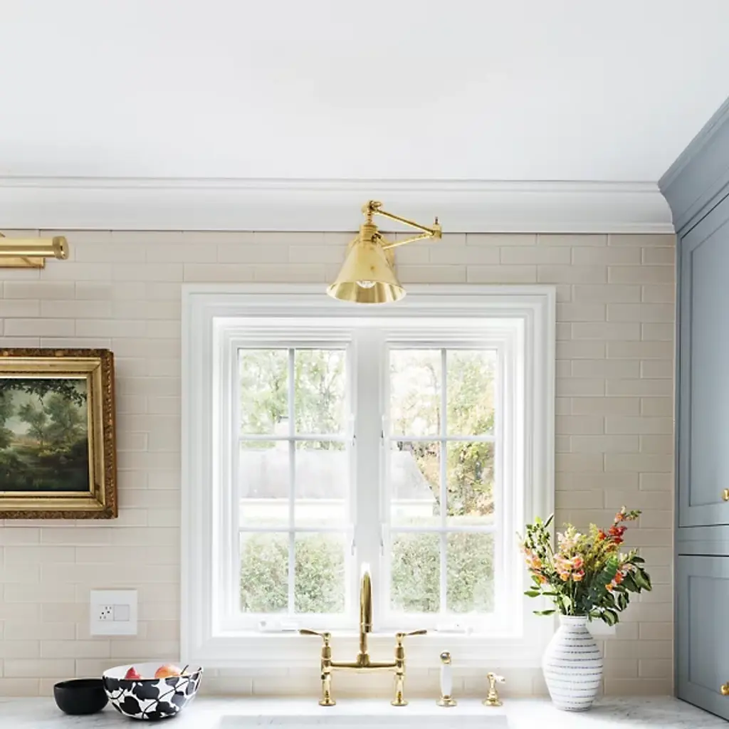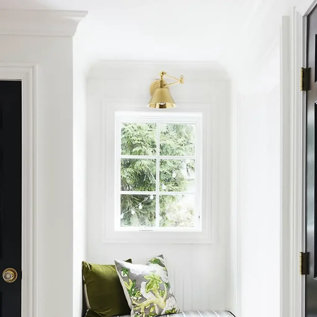 The Hudson Valley Garden City Double-Arm Wall Sconce provides bright downlighting over a comfy chair, perfect for aiding in late-night reading or delicate handiwork. Its swingarm design offers simple mobility and adjusting when necessary, the Large version extending almost 3 feet from the wall.