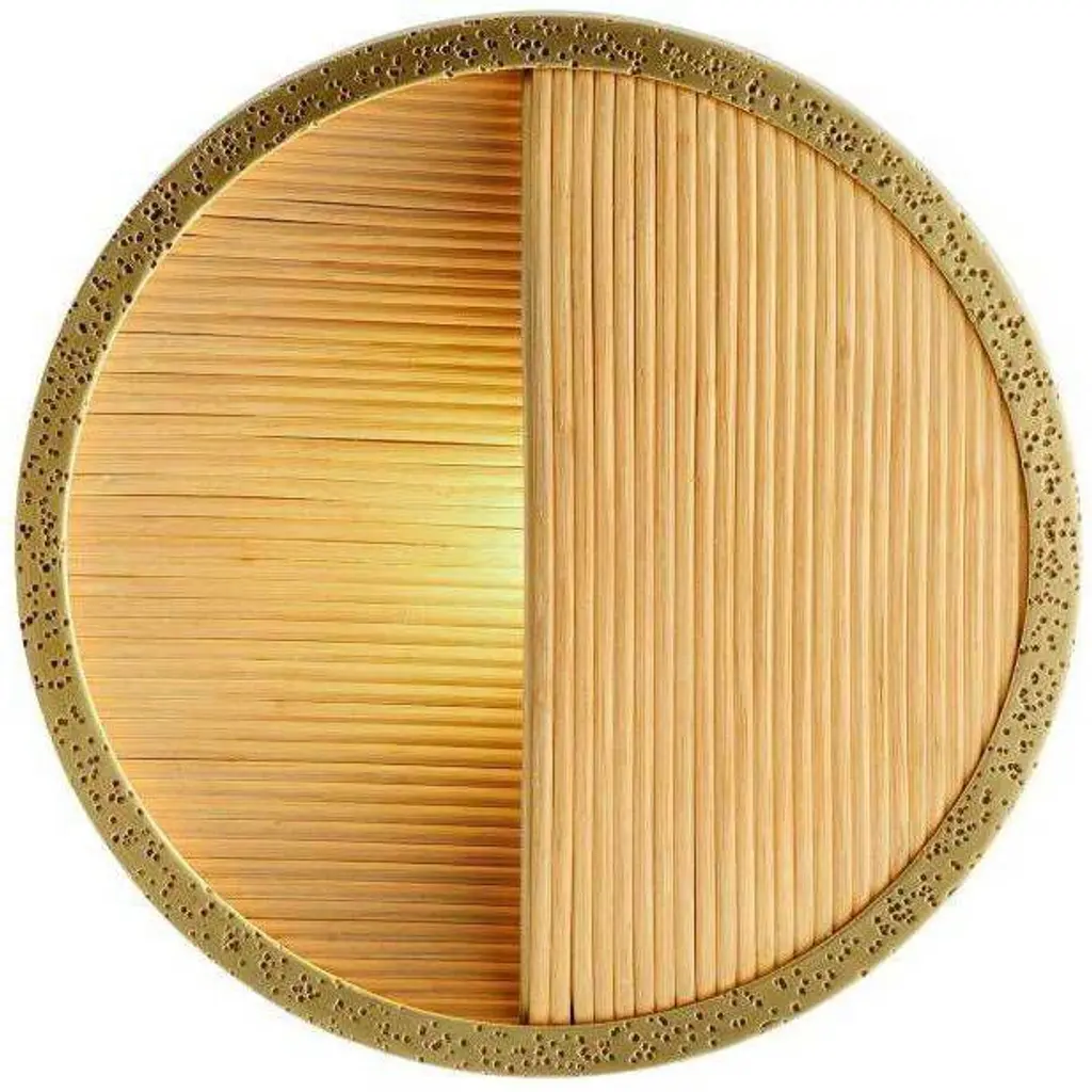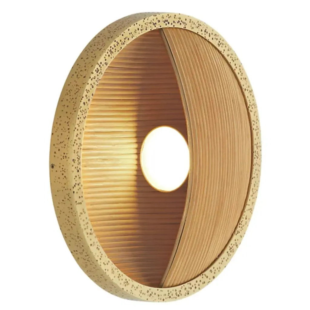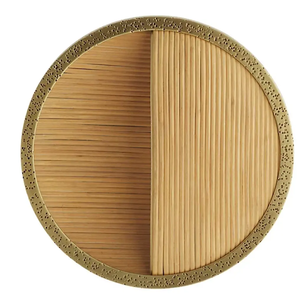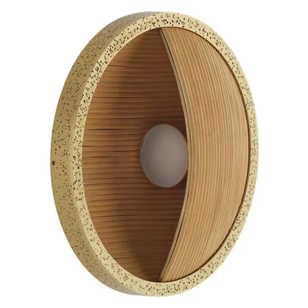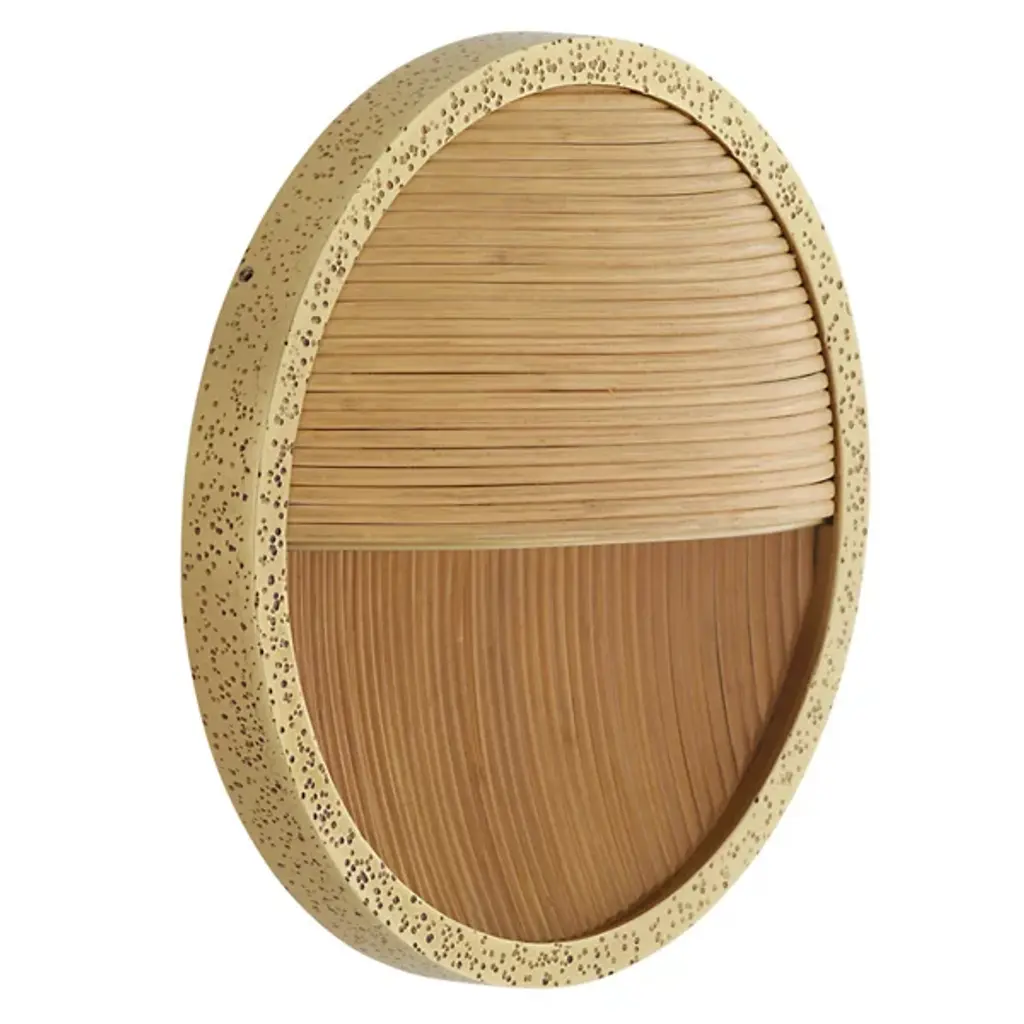 The Garland LED Wall Sconce from Arteriors celebrates natural materials through its innovative use of pencil rattan. Suitable for covered outdoor installations, this dimmable wall sconce offers versatile mounting options - vertical or horizontal - allowing for customized light direction. Its traditional antique cow tail technique distresses the edges, adding depth to the design. The hammered metalwork frame provides structure while letting the rattan's organic patterns take center stage. A single integrated LED source illuminates the piece, making it ideal for spaces that bridge rustic and refined aesthetics.