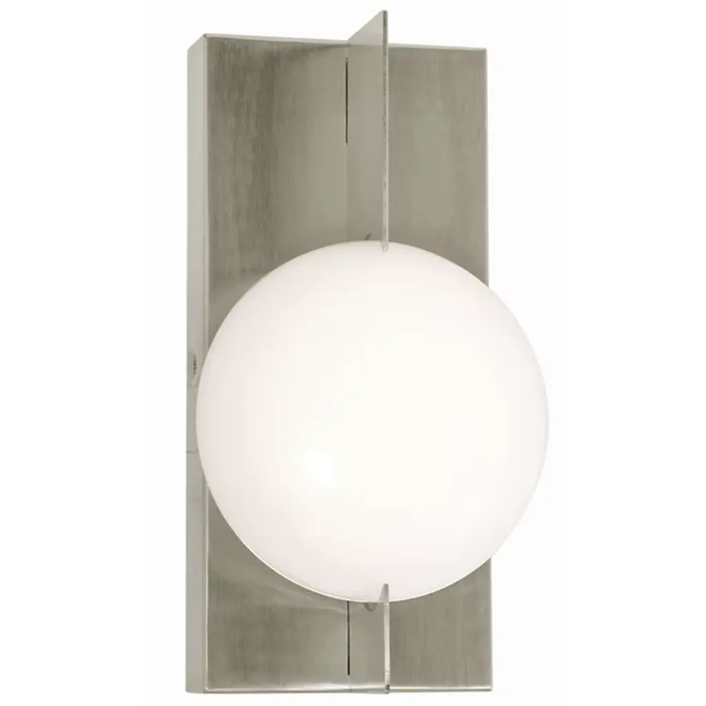 Sculptural style and functionality to spare for the modern bathroom. The Gates LED Wall Sconce by AFX Lighting pairs a moon-like acrylic shade with an architectural steel base. Within the disc-shaped shade, integrated LEDs remain completely hidden until the fixture is turned on. When that happens, the acrylic produces an even and vibrant glow ideal for applying make-up, shaving and other vanity area tasks, as well as general ambience all around a bathroom.