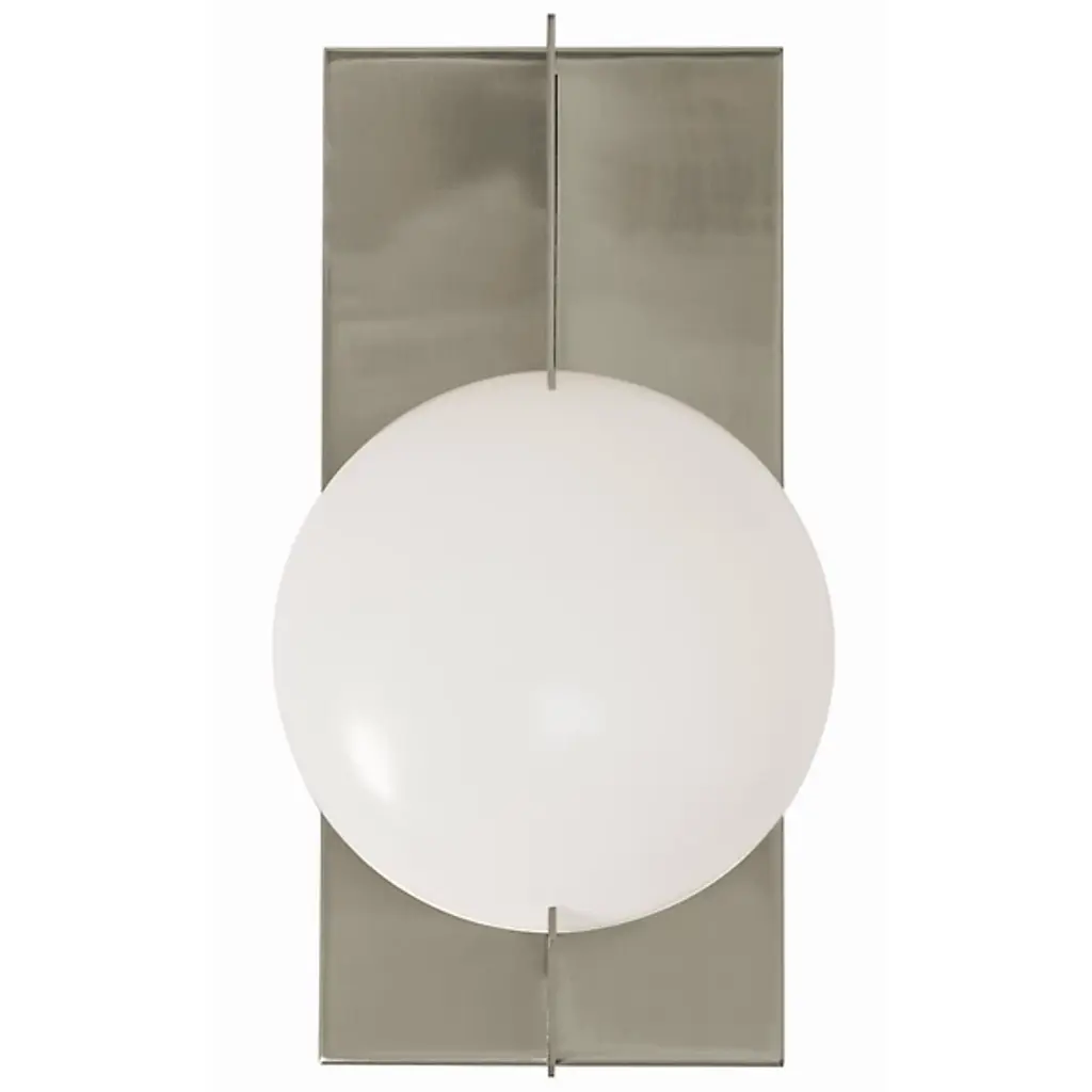 Sculptural style and functionality to spare for the modern bathroom. The Gates LED Wall Sconce by AFX Lighting pairs a moon-like acrylic shade with an architectural steel base. Within the disc-shaped shade, integrated LEDs remain completely hidden until the fixture is turned on. When that happens, the acrylic produces an even and vibrant glow ideal for applying make-up, shaving and other vanity area tasks, as well as general ambience all around a bathroom.