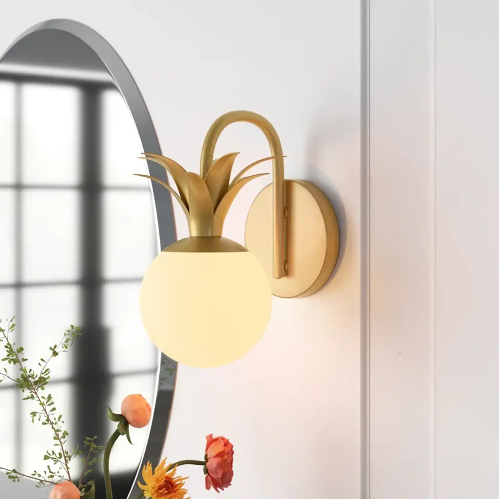 The pop of leafy flair atop these globe-shaped lights will give any room in many decors - coastal, tropical, art deco, bohemian, shabby elegance - a dash of fun and glamour. The classic, gleaming brass finish and etched opal glass merge the best of sophisticated and streamlined. This LED lamp is illuminated by a 4.50w G9 LED light for a bright and long-lasting source. Opt to mount the fixture either up or down.