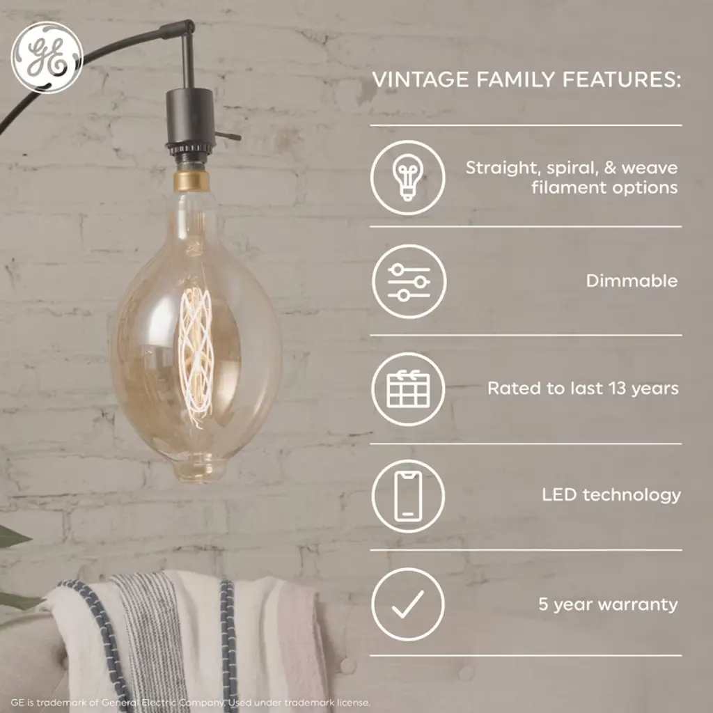 Future, meet the past. Introducing GE Vintage LED Bulbs, the perfect solution for adding a touch of nostalgia and character to your home's lighting system. These bulbs feature a vintage design with modern LED technology, providing a warm and inviting light that's perfect for any space. With their energy-efficient design and long lifespan, GE Vintage LED Bulbs offer both cost savings and long-lasting performance. They are available in a variety of shapes and sizes to fit any fixture, from chandeliers to wall sconces. Whether you're looking to create a cozy atmosphere or a retro vibe, GE Vintage LED Bulbs provide the perfect lighting solution for your needs. Upgrade your lighting and experience the timeless charm of GE Vintage LED Bulbs.