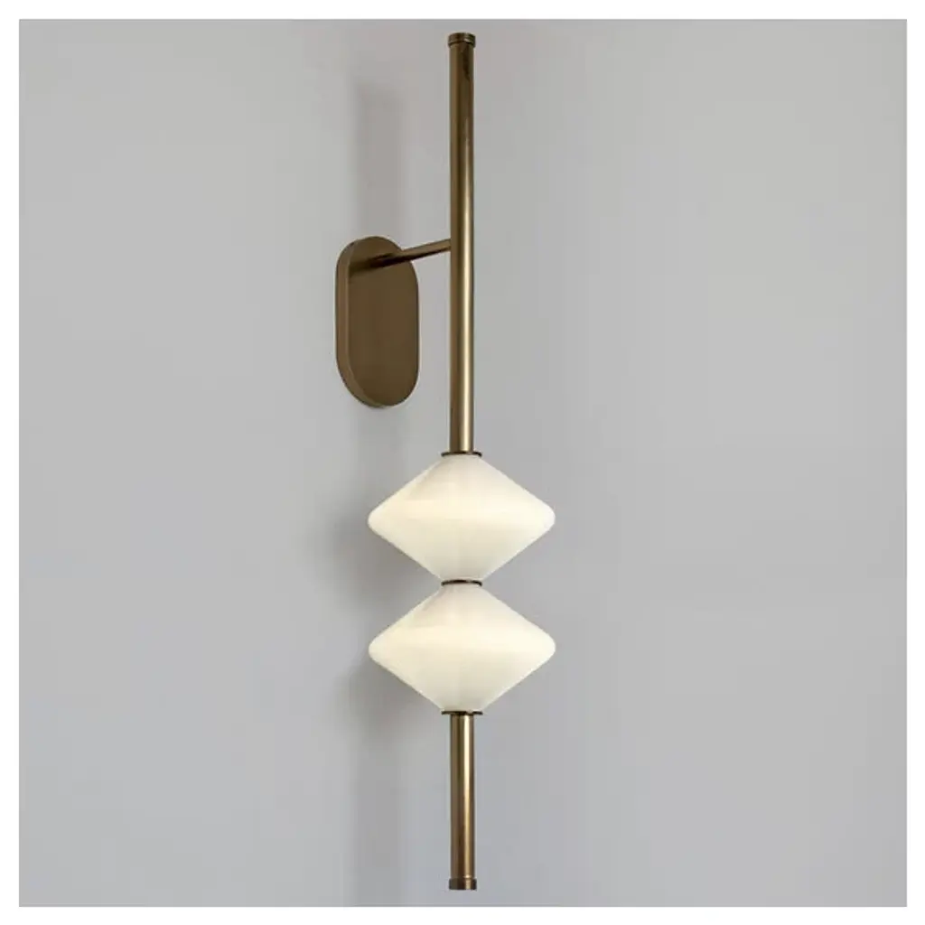 The Gem 2 Wall Sconce by Ridgely Studio Works, meticulously crafted from brass, features an LED light source gently diffused by a hand-blown glass shade inspired by an abacus bead. This sophisticated fixture harmoniously combines brass and hand-blown steel for both durability and style. Illuminate your space with its warm and inviting glow, enhancing any room with its unique design and elegant craftsmanship. Enjoy the perfect blend of functionality and aesthetic appeal with this exquisite wall sconce.