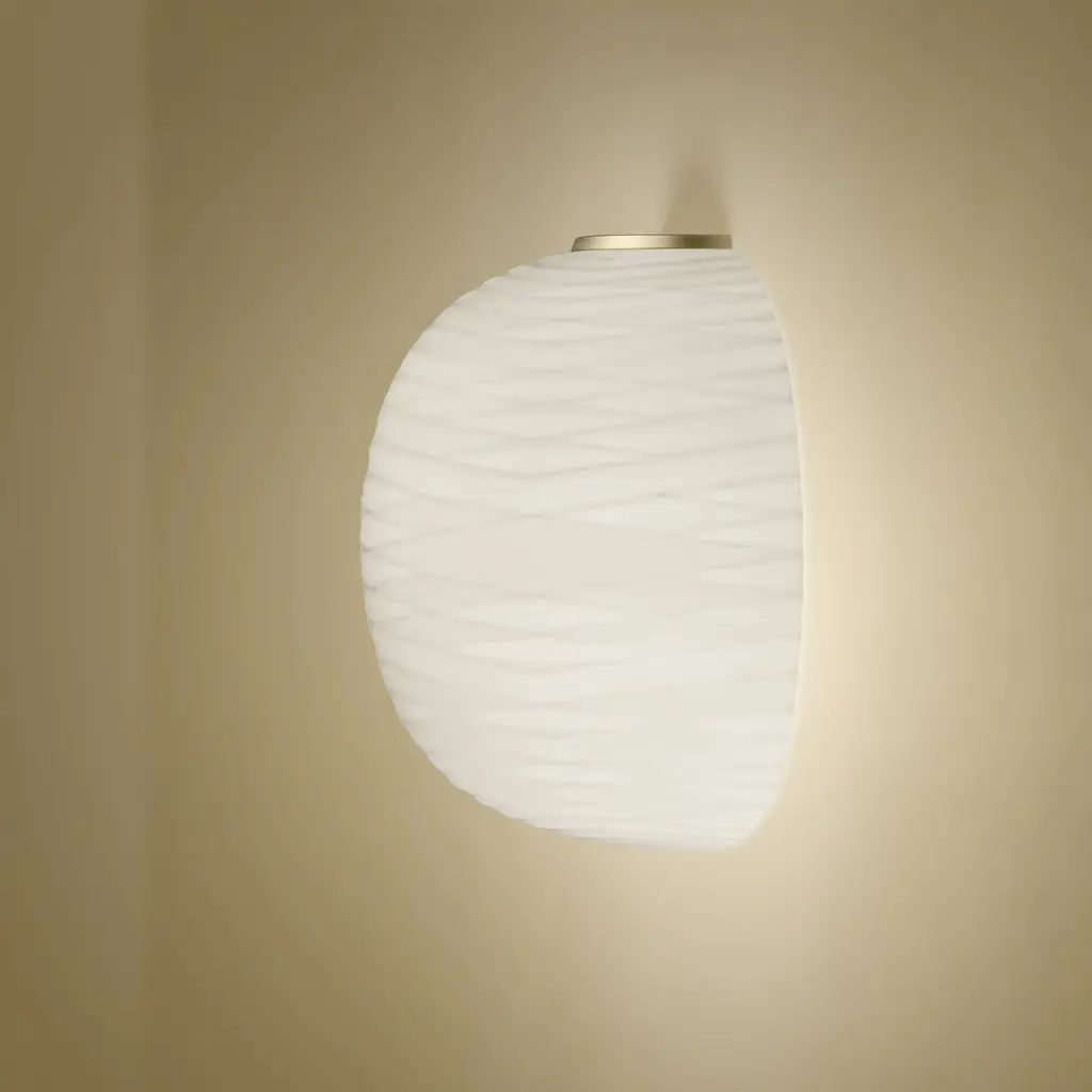 Gem declares at first sight the preciousness of glass as a material: it is characterized by a graphic, undulating pattern of waves across its surface, making the lamp unmistakable even when switched off. Part of Foscarini’s Mix & Match System, Gem wall support is available in three different colors and can be combined in a flexible way, to define and coordinate the lighting of diverse environments. Features