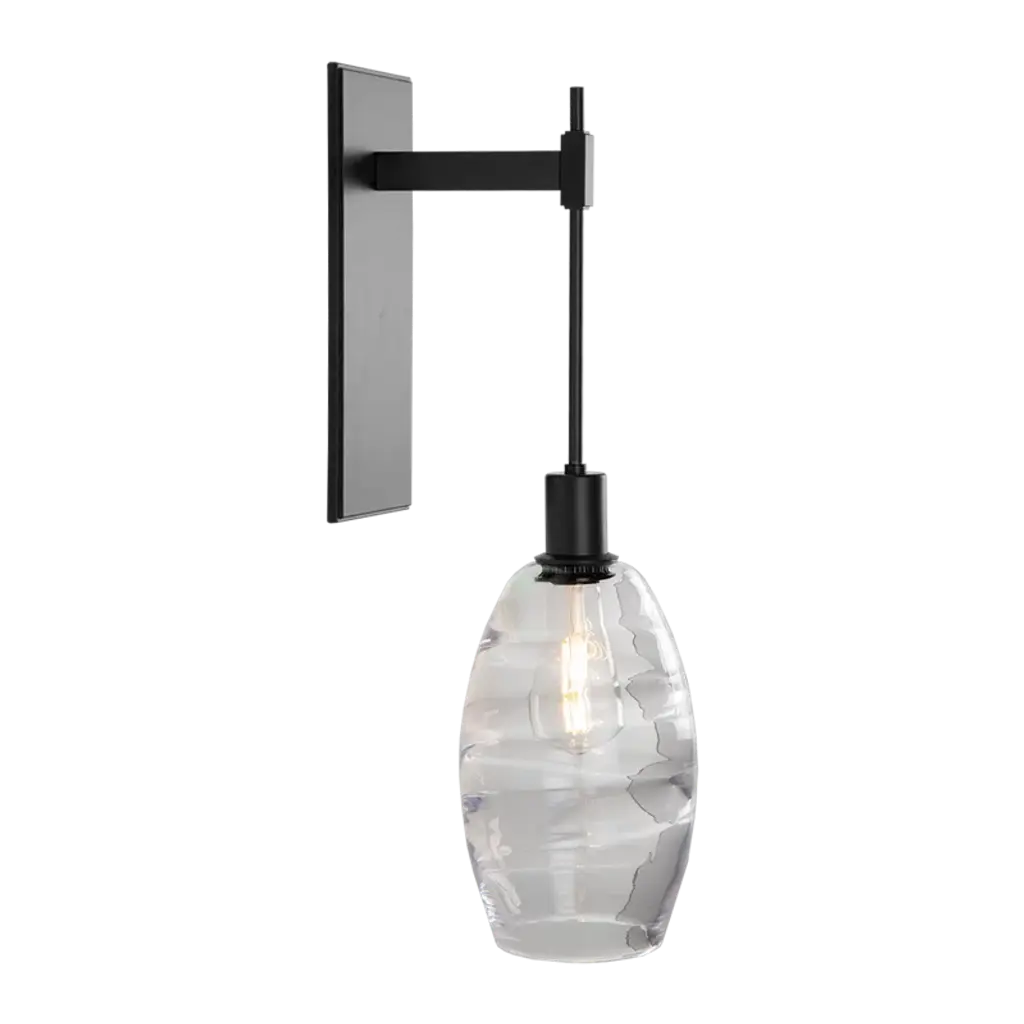 Like a shimmering earring, the Gem Tempo LED Wall Sconce from Hammerton Studio adorns your home’s walls with a dazzling form bursting with light-reflecting detail from every angle you look at it. While often reserved for one’s body, Hammerton Studio designed the piece to see what happens when jewelry is introduced to the home. It offers a sophisticated presentation as it mounts to your walls with a sleek geometric backplate. A slender arm and stem line up the shade physically and visually with a trim figure. Hanging neatly below, intricate facets shoot out in every angle, their surfaces accompanied by textural detail only possible through the art of glass blowing. These cast forms present a dynamic silhouette of angles that visually jumps off against the wall. The light raining down on the gem further highlights its features as it shines through and filters out as a seductive ambient glow.