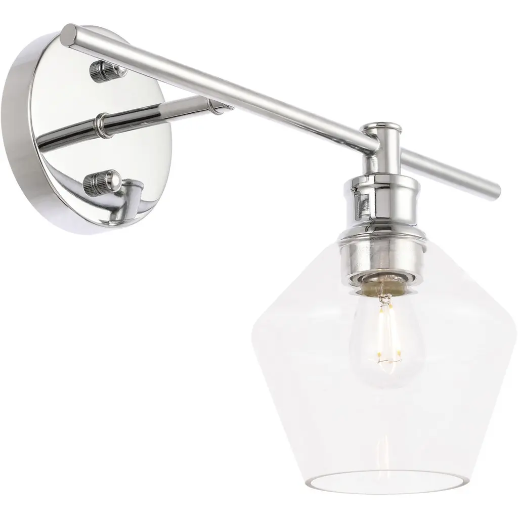 The Gene Collection of lights will be sure to have your guests admire your modern sense of style with the beautiful simplicity of its shape and form. While this wall lamp is versatile and can be oriented with the light facing up or down, its modern style will remain a constant, and its illumination will always brighten any home. Available in a brass, chrome, or black finish with either a clear or frosted rhombus glass shade, it is the perfect wall lamp to enhance your bathroom, foyer, or hallways, allowing you to always live in sleek contemporary style (light bulbs not included). Also available in either left facing or right facing configuration.
