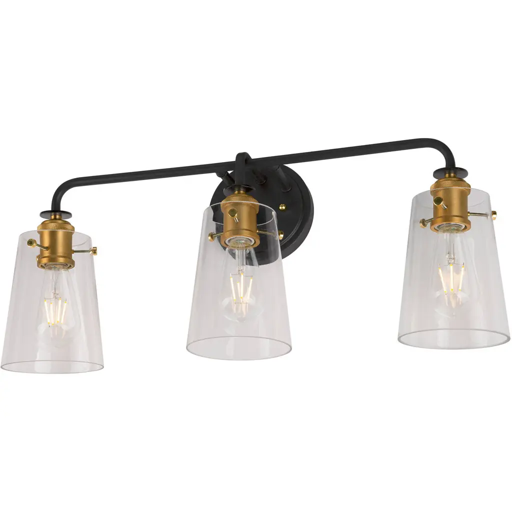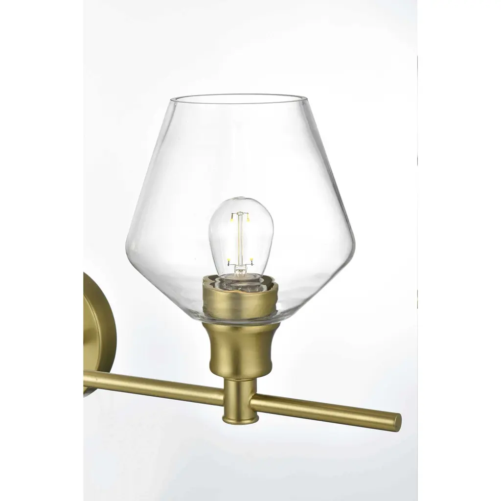 Enhance your living space with this versatile and modern wall sconce. Available in satin gold, chrome, black, and brass finishes, this fixture brings a touch of luxury to any room. The wall sconce features a pair of uniquely shaped, flared clear glass shades that deliver a beautiful, ambient glow, whether mounted upwards or downwards. Crafted from durable iron and glass, it combines strength with style, and the clean lines of the round backplate and horizontal arm create a contemporary aesthetic. Designed for hardwired installation, this fixture uses E26 standard sockets, allowing you to choose the ideal bulbs for your setting. This wall sconce is the perfect blend of form and function, ready to add a stylish and inviting touch to your home.