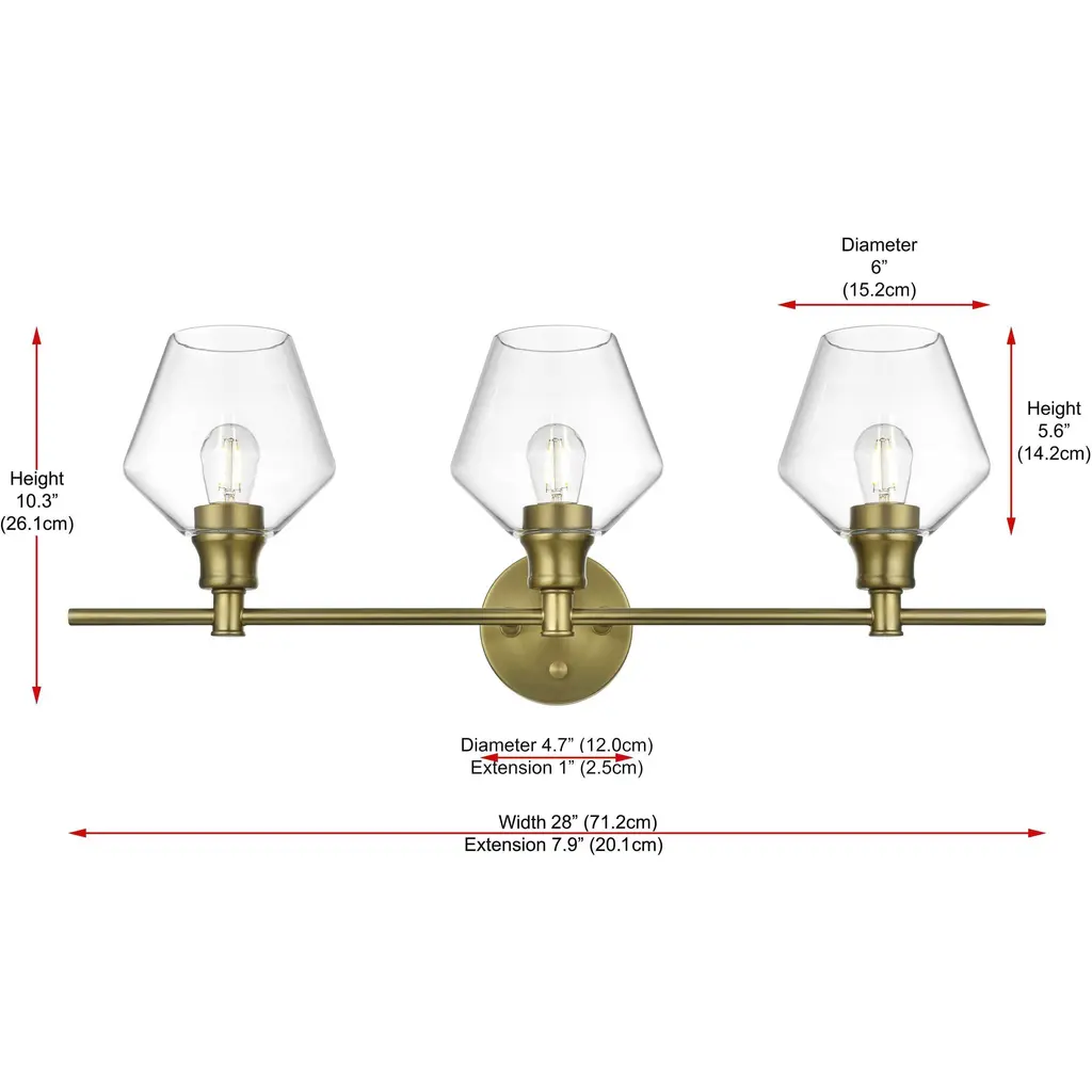 Gene 3 Light 28 Inch Satin Gold Bath Sconce Wall Light