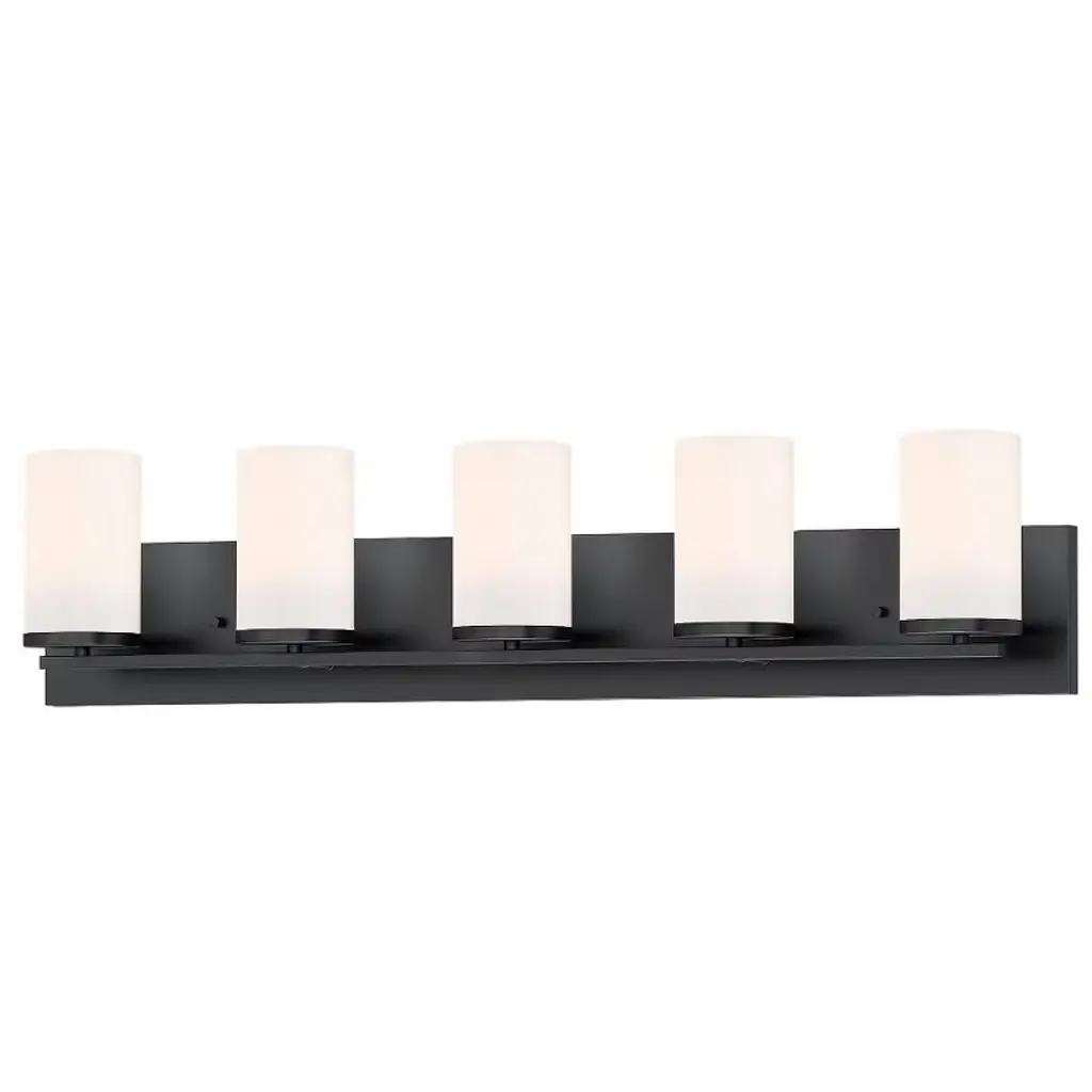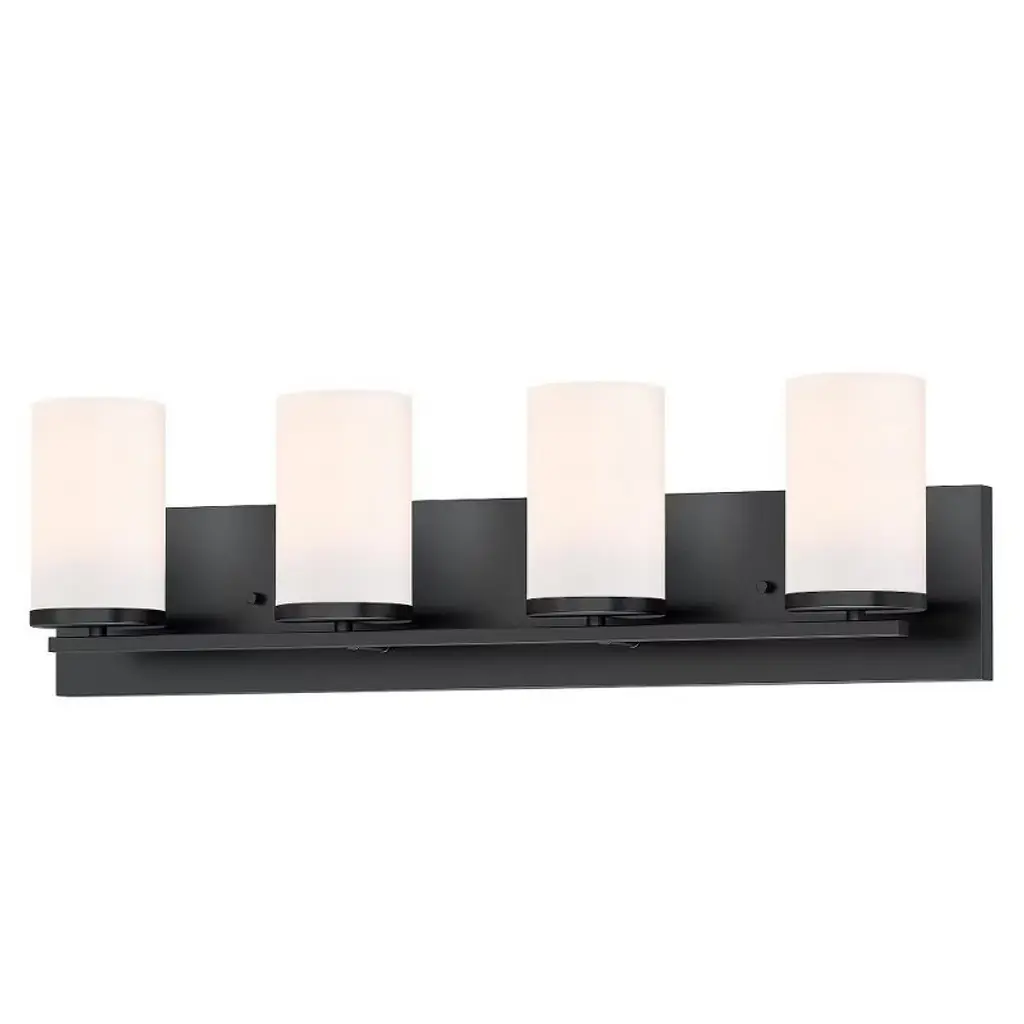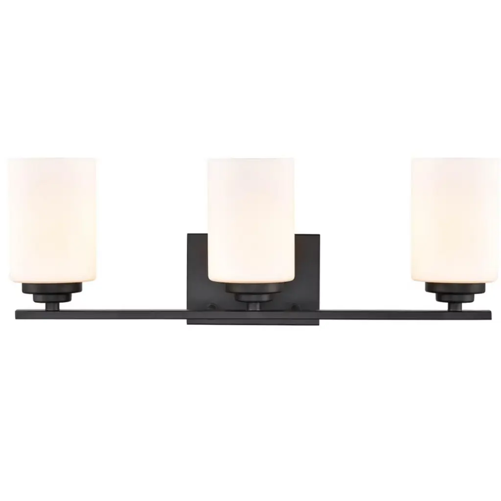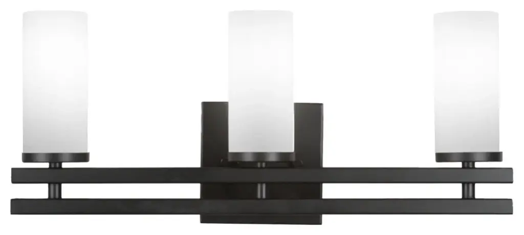 Three Light Wall / Bath from Hettinger collection in Midnight Black finish. Number of Bulbs 3. Max Wattage 100.00 . No bulbs included. The Hettinger three light vanity fixture in Midnight Black provides abundant light for your bath vanity, while adding a layer of today''s style to your interior design. The Hettinger lighting collection by combines a traditional look with chic, modern charm. The minimalism of the tubular glass shades balances with the unique, outward-curve of the semi-circular arm detail. Hettinger is available in three finishes - Bronze and Brushed Nickel for the whole collection, and Chrome, Midnight Black and Satin Brass for the bath vanities. The assortment includes six- and nine-light chandeliers, a one-light wall sconce, two-, three- and four-light bath vanity fixtures, a three-light pendant and two- light semi-flush convertible pendant. Incandescent and ENERGY STAR-qualified LED lamping are available, all fixtures are California Title 24 compliant. No UL Availability at this time.