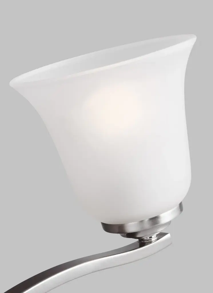 Blubs Not IncludedThe Emmons lighting collection by Generation Lighting Lighting combines form and function in a traditional empire silhouette. Trumpeted Satin Etched glass shades and a circular finial further enhance the design. Cluster three sizes together in a multi-fixture installation to make a beautifully dramatic statement in the living room, foyer, entryway or family room. The Emmons collection comes in two finishes: Brushed Nickel and Heirloom Bronze. Its assortment includes three-, five- and nine-light chandeliers; one-light mini pendant, three-light pendant, one-light wall sconce light; both flush and semi-flush ceiling fixtures; and one- two-, three- and four- light bath vanity fixtures. All fixtures are ENERGY STAR-qualified and California Title 24 compliant.4 A19 Medium 100 watt light bulbssatin etched glass shadesFixture may be mounted in the up or down positioncETL listed for damp locationsA great choice for your do-it-yourself projectRoom Type: Dining Room, Living RoomCategory: ChandelierENERGY STAR: NoUnit Increments: 1Order Unit of measure: EAExtension: 7.375Fan Style: 0Light Kit Included: NoRemote Included: No# of Blades: 0Blade Pitch: 0Blade Finish 1: 0Blade Finish 2: 0Motor Size: 0Fan Diameter: 0Watts (Med): 0CFM/Watt (Med): 0CFM (Low): 0Watts (Low): 0CFM/Watt (Low): 0Canopy: 0Backplate: D:5'''' DP:7/8'''' OB UP:3 3/4'''' OB DOWN:2 1/2'''' RoundWire/Cord Length: 6.5Cord Color: Black/WhiteChain Length: 0Stems included Quantity & Size: 0Master Carton Code: 0P/S Packed WEIGHT: 0Shade/Glass: satin etched glass shadesQuantity Fabric/Glass Shades: 4Voltage: 120Lamping: 4 A19 Medium 100 watt light bulbsTemperature ( K): 0CRI: 0Lumens: 0Number of Bulbs: 4Type of Bulbs: A19Max Wattage: 100Safety Rating: cETLSafety RATING LOCATION: damp The Emmons Collection combines form and function in a traditional empire silhouette. Trumpeted Satin Etched glass shades and soft, flowing lines further enhance the design.Design Element / Inspiration: Form and function combine in a traditional empire silhouette with Trumpeted Satin Etched glass shades and sweeping armsLamping / Dimmable: Recommended incandescent bulbs are Medium Base with a maximum of 75w (purchased separately); OR order with Medium Base 9w LED bulbs (with 2700K CCT and output of 800 lumens) included.ES / CEC Listings: All fixtures are available as ENERGY STAR-qualified and California Title 24 compliantAssortment, Installation, Canopy Detail: The Emmons collection offers fixtures of various sizes and configurations to coordinate the same design theme across several different roomsListings: Damp Rated for use in sheltered, but damp environments like bathrooms, covered patios or porchesWarranty: 1 Year Warranty for standard fixtures and 3 year Warranty for ENERGY STAR-qualified LED version