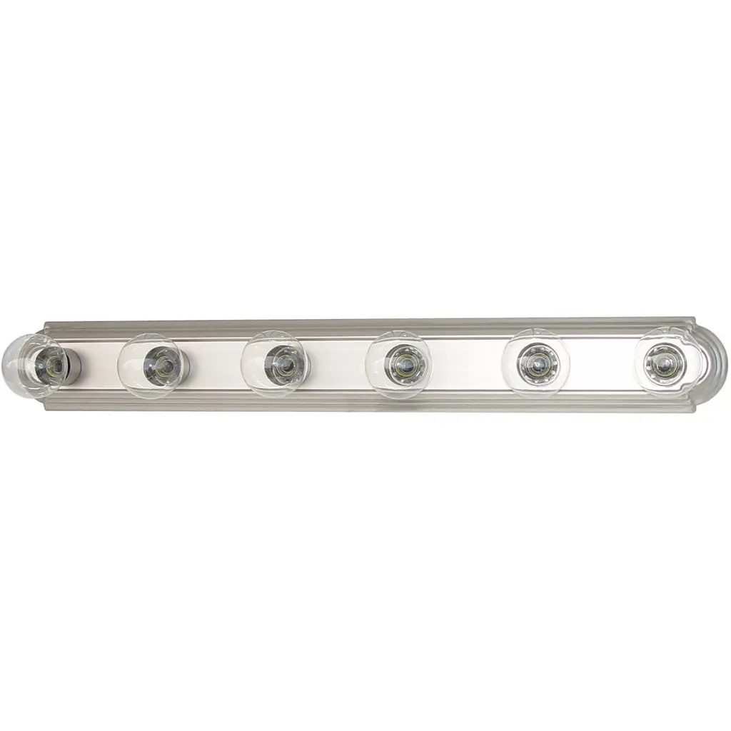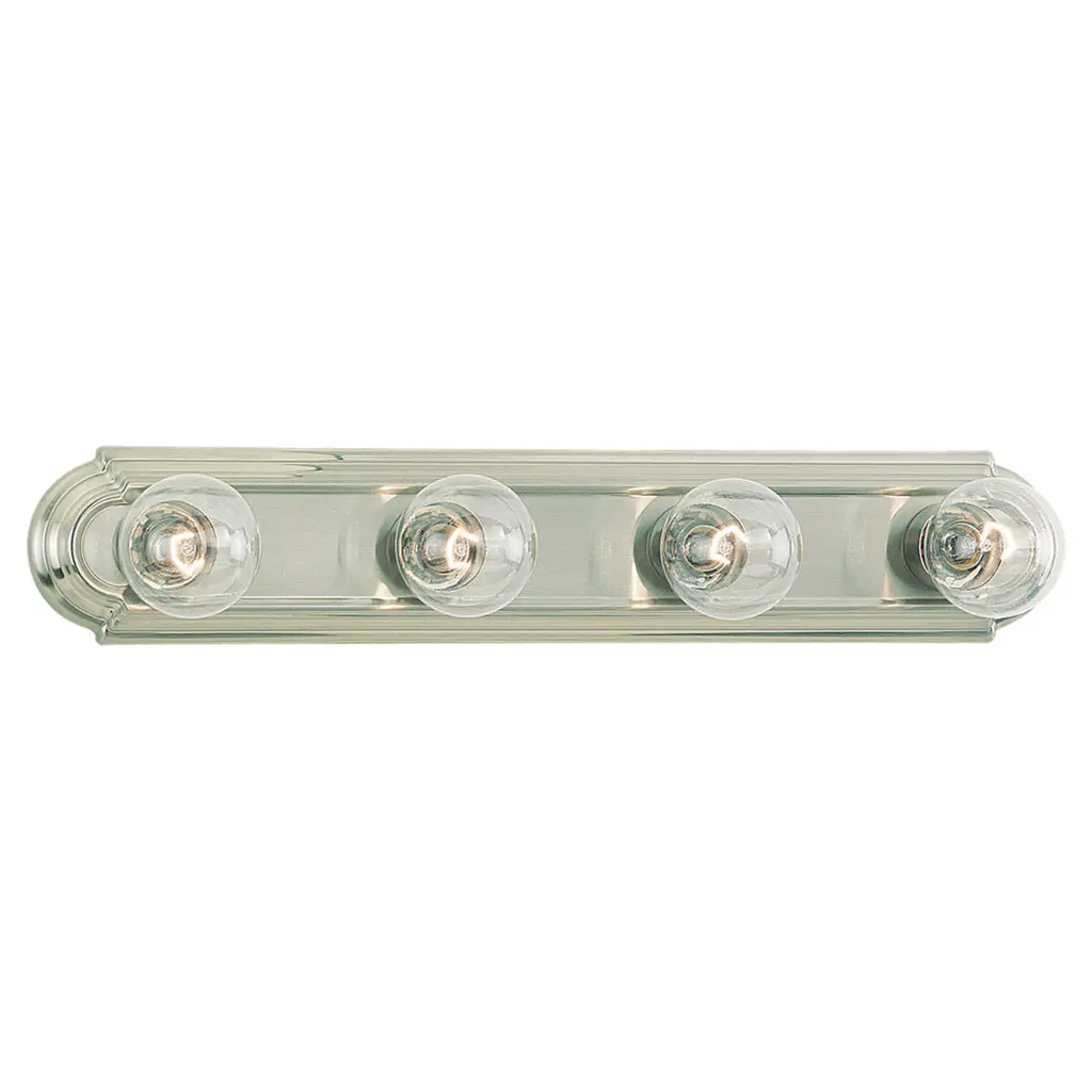 Blubs Not IncludedThe Generation Lighting Lighting De-Lovely eight light vanity bar fixture in brushed nickel provides abundant light for your bath vanity, while adding a layer of today''s style to your interior design. For added star quality to your bath or dressing area. De-Lovely brings the style of Hollywood dressing rooms to your home and provides generous illumination for getting ready!Featured in the decorative De-Lovely collection8 G25 Medium 100 watt light bulbsClear bulb(s) recommended for this fixtureFixture may be mounted horizontal or verticalUL listed for damp locations