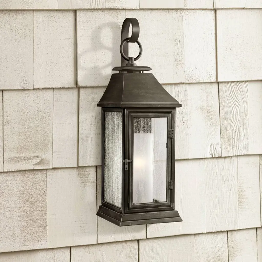 Traditional gas lanterns, beacons of flock tenders long ago, are the inspiration for the Shepherd collection small dark weathered zinc outdoor wall light from Generation Lighting. A decorative shepherd's crook is an authentic touch while the single bulb, seen through diffusive opal etched inner glass and clear seedy outer glass, recalls the herder's faithful flame. The beautiful roofed body is constructed of StoneStrong composite and features a front hinged door that latches, which in times past allowed the shepherd to easily light and extinguish his lantern's flame. Today, you just need to flick a switch. Made of StoneStrong - a latex composite of ground marble and industrial finish adhesive layered together for strength, durability, and consistent finish.
