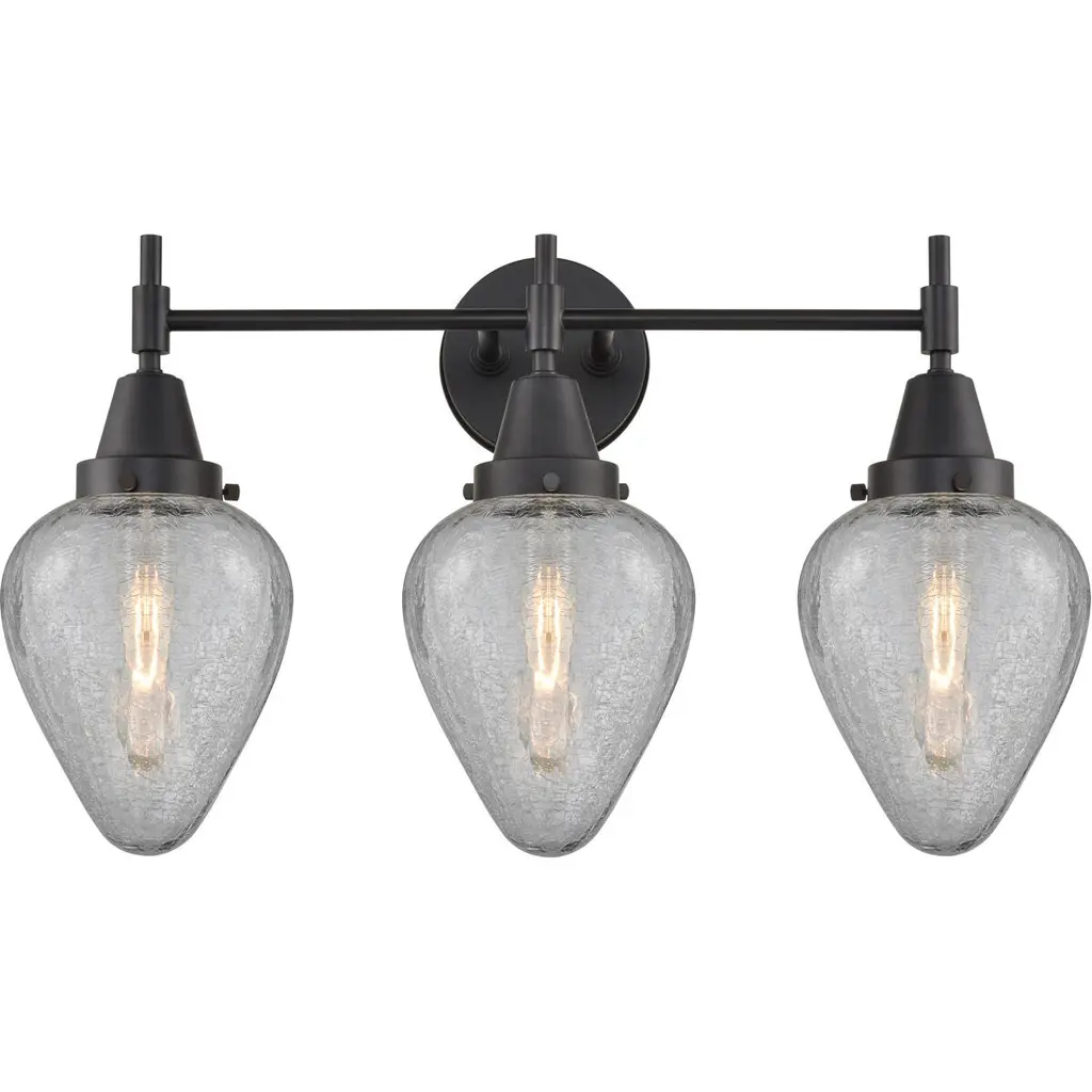 INNOVATIONS 616-3W-OB-G165 Geneseo 3 Light 24 inch Bath Vanity Light Oil Rubbed Bronze. Style: Industrial, Modern Contempo, Restoration-Vintage, Transitional . Collection Name: Edison. Metal Finish(Body): Oil Rubbed Bronze. Metal Finish(Canopy/Backplate): Oil Rubbed Bronze. Material: Steel, Cast Brass, Glass. Dimension(in): 14(H) x 24.5(W) x 7.75(Ext). Bulb: (3)60W Medium Base Incandescent(Not Included). Voltage: 120. Dimmable: Yes. Color Temperature (Kelvin): 2200. Color Rendering Index (CRI): 99.9. Lumens: 220. Life Expectancy (Hours): 2000. Glass Shade Description: Clear Crackle Geneseo. Glass Type: Crackled. Shade Shape: Teardrop. Glass or Metal Shade Color: Clear Crackled. Shade Material: Glass. Shade Dimension(in): 6.5(W) x 8.75(H). Fitter Measurement (Glass Or Metal Shade Fitter Size): 3.25 inch Fitter. Backplate Dimension(in): 4.5(W) x 0.75(Depth). ADA Compliant: No. California Proposition 65 Warning Required: Yes. UL/ETL Certification Type: Damp Location.