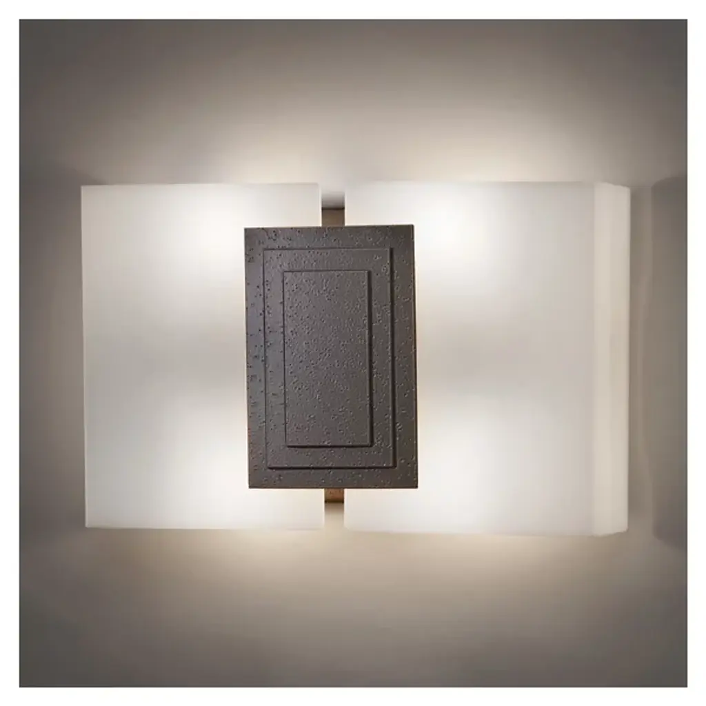 The Ultralights Genesis 11217 Wall Sconce produces a handsome wash of light along a hallway or in the living room or dining room. Its dual shades in many styles complement the fixture's strong front metal accent and visible wall plate for a balanced appearance.