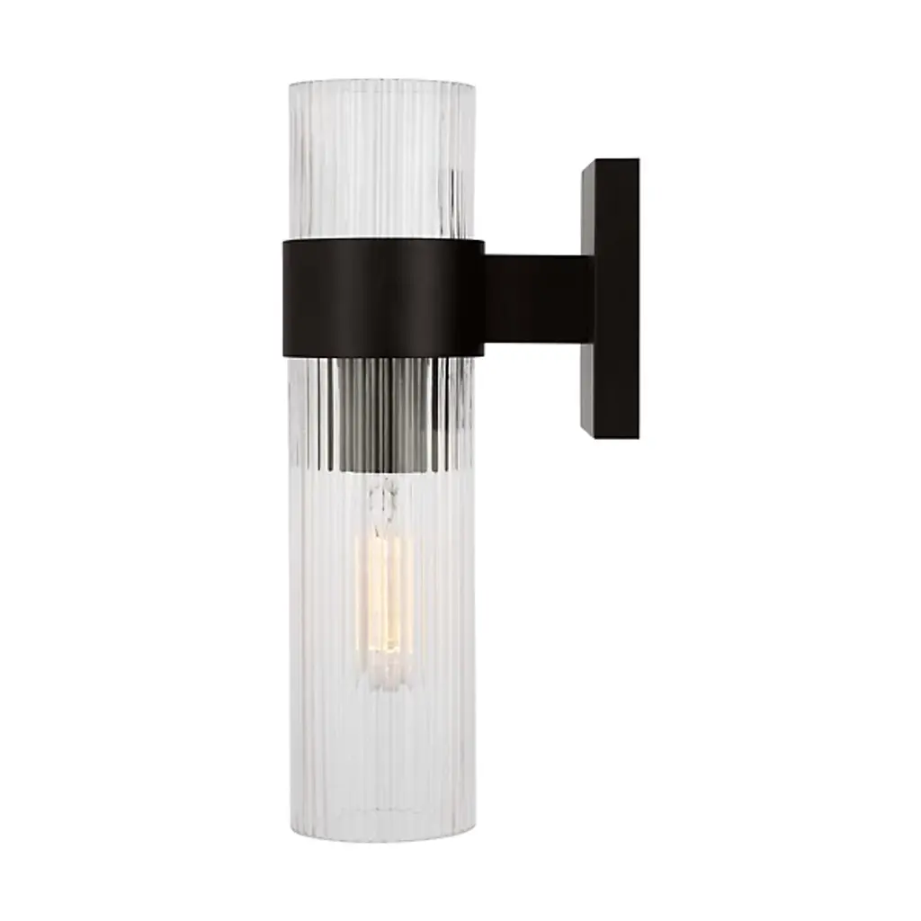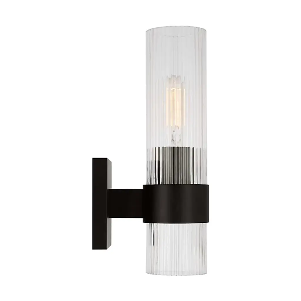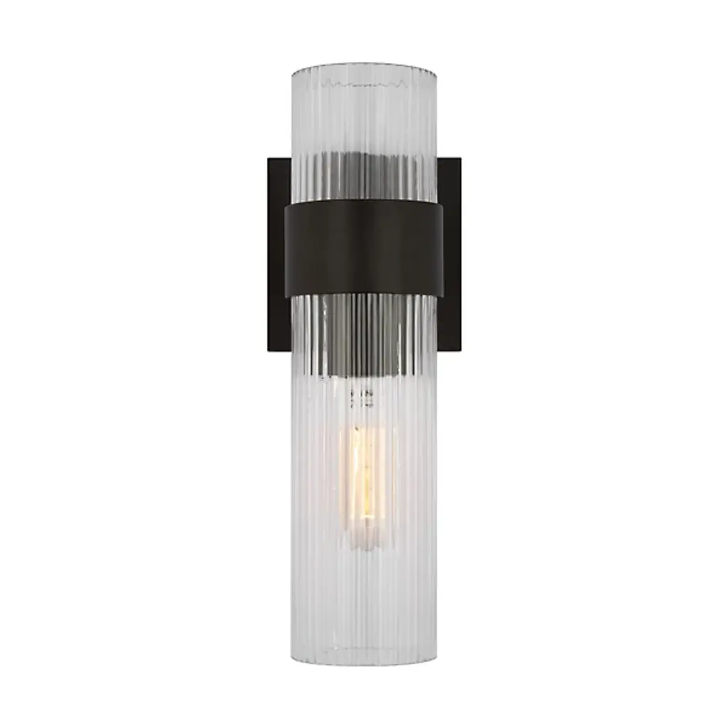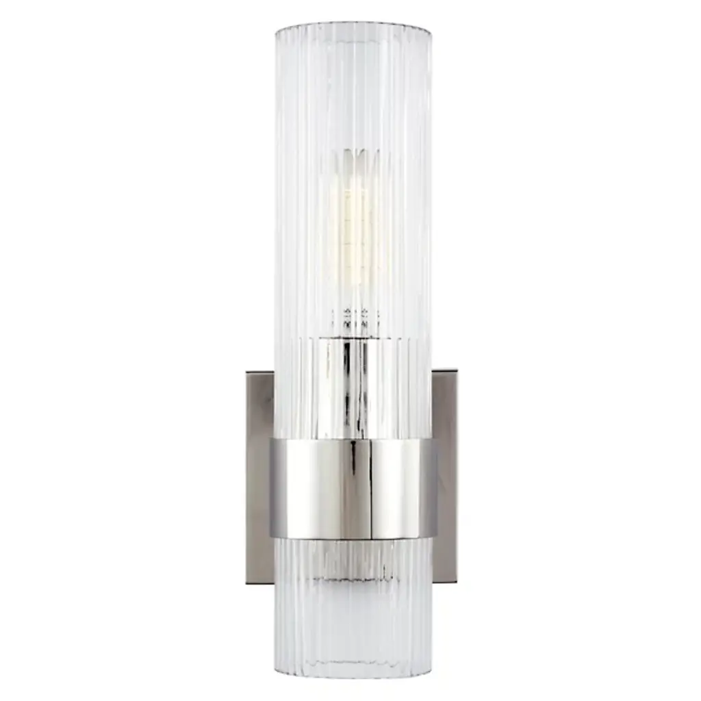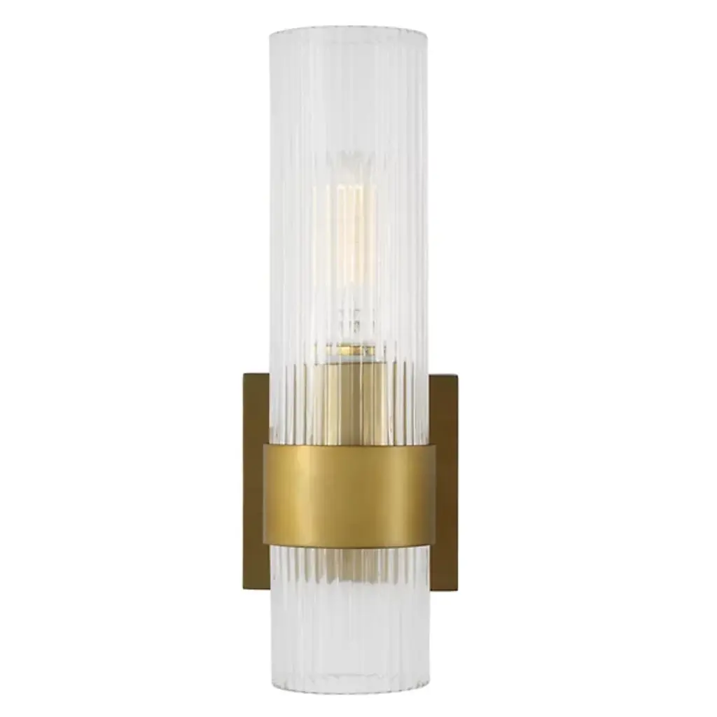 The Geneva Wall Sconce by Visual Comfort Studio, formerly known as Chapman & Myers, brings an elegant touch to the spaces it brightens. With a simply structured build, this design is anchored by a square metal backplate as a sleek metal band that features a beautiful finish wraps around a single glass shade. This rippled glass shade filters a warm and welcoming layer of light onto surroundings, bringing a sophisticated and stunning touch to its environment.