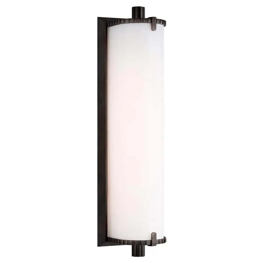 Accentuate entryways and frame your mirrors with the edge-defined glow of the Geneva Wall Sconce from Visual Comfort Signature, formerly known as Visual Comfort, It’s a Ralph Lauren design bringing out the sophisticated character of your home’s interior. Its tall geometric form lines up perfectly with the corners of your rooms or hallways. The pointed corner of the piece creates an even split for its white glass shades. A flip of the switch creates two bands of light that point in opposite directions to create an encompassing glow.