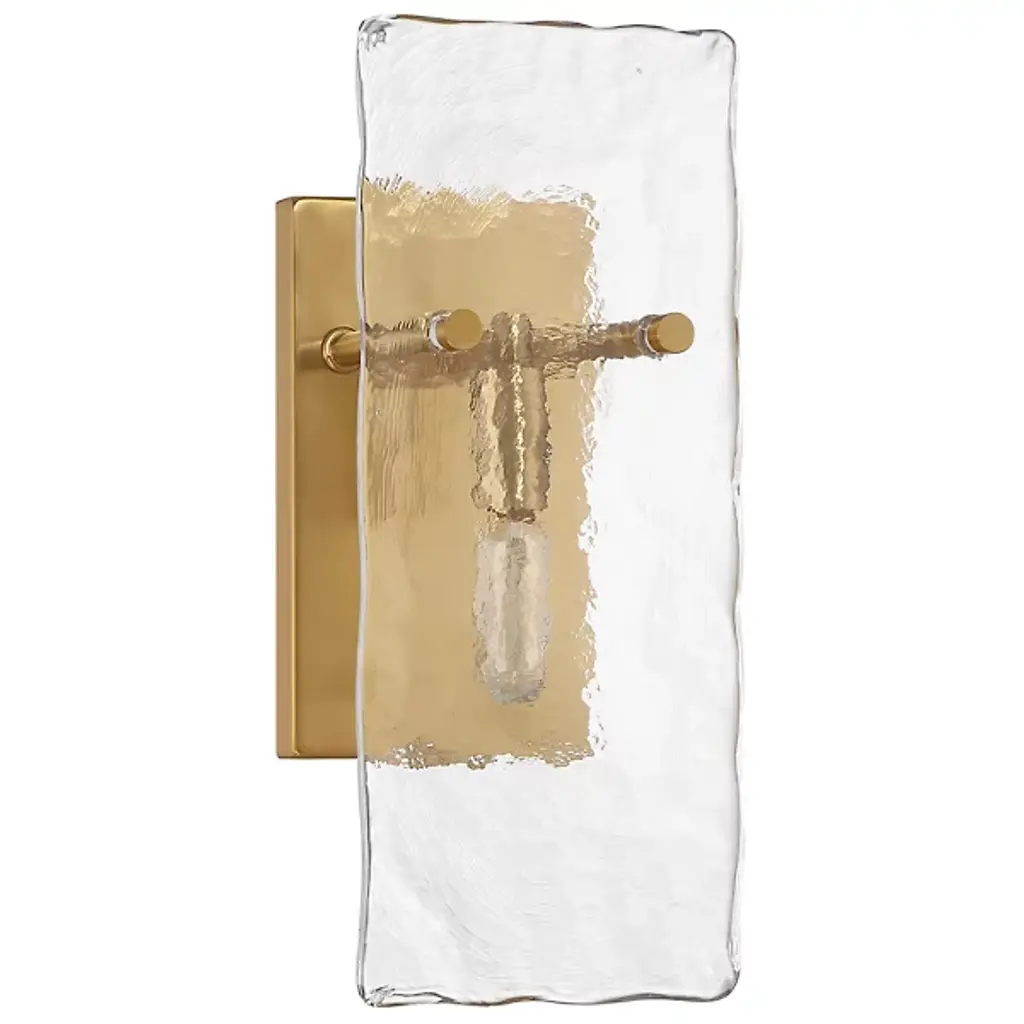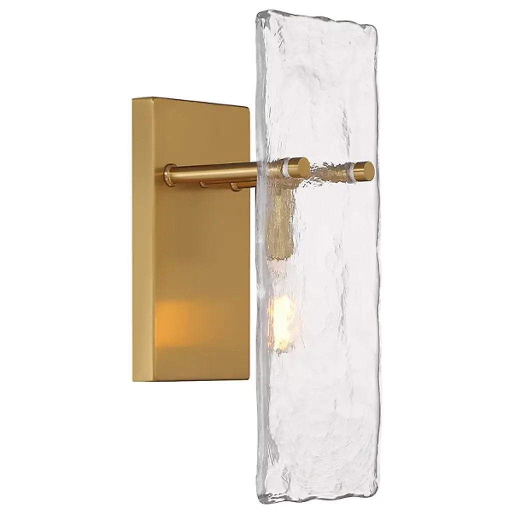 The Genry Wall Sconce from Savoy House is a luminous rectangle of handmade water glass that seems to capture a slice of ocean, frozen mid-ripple. The matte frame acts as a window to this watery world, where light dances and plays like sunbeams piercing the depths. Mounted on your bedroom wall, this sconce becomes an ever-changing artwork that brings the soothing rhythm of the sea into the heart of your home.