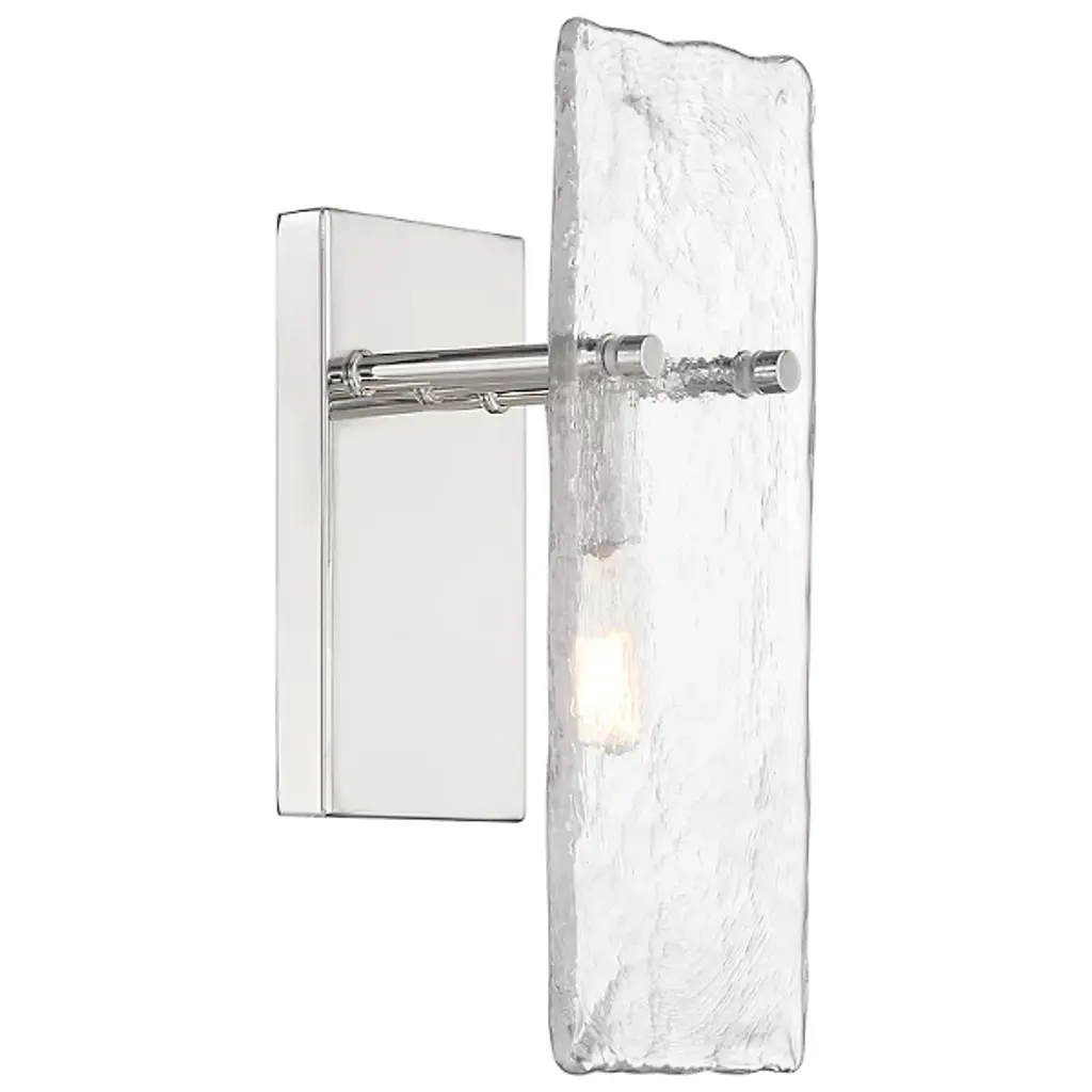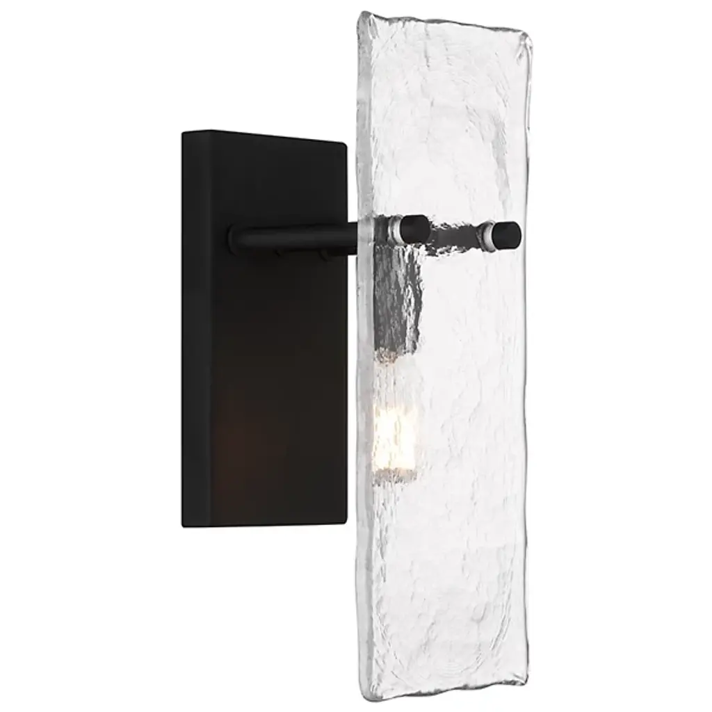 The Genry Wall Sconce from Savoy House is a luminous rectangle of handmade water glass that seems to capture a slice of ocean, frozen mid-ripple. The matte frame acts as a window to this watery world, where light dances and plays like sunbeams piercing the depths. Mounted on your bedroom wall, this sconce becomes an ever-changing artwork that brings the soothing rhythm of the sea into the heart of your home.