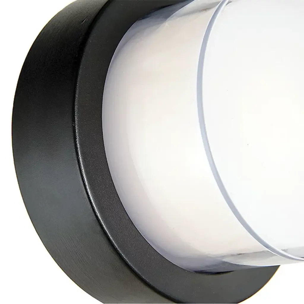 Simple, smooth, and sophisticated. The Geo LED Outdoor Wall Sconce by Abra Lighting is a minimalistic lighting solution for patios, porches, and backyards. A rounded aluminum frame surrounds a white acrylic shade as it extends forward as one clean piece. Softly diffusing the glow from its integrated LED light source, it emits ample energy-efficient light throughout backyards, patios, porches, or any space that calls for a functional light through modern design.