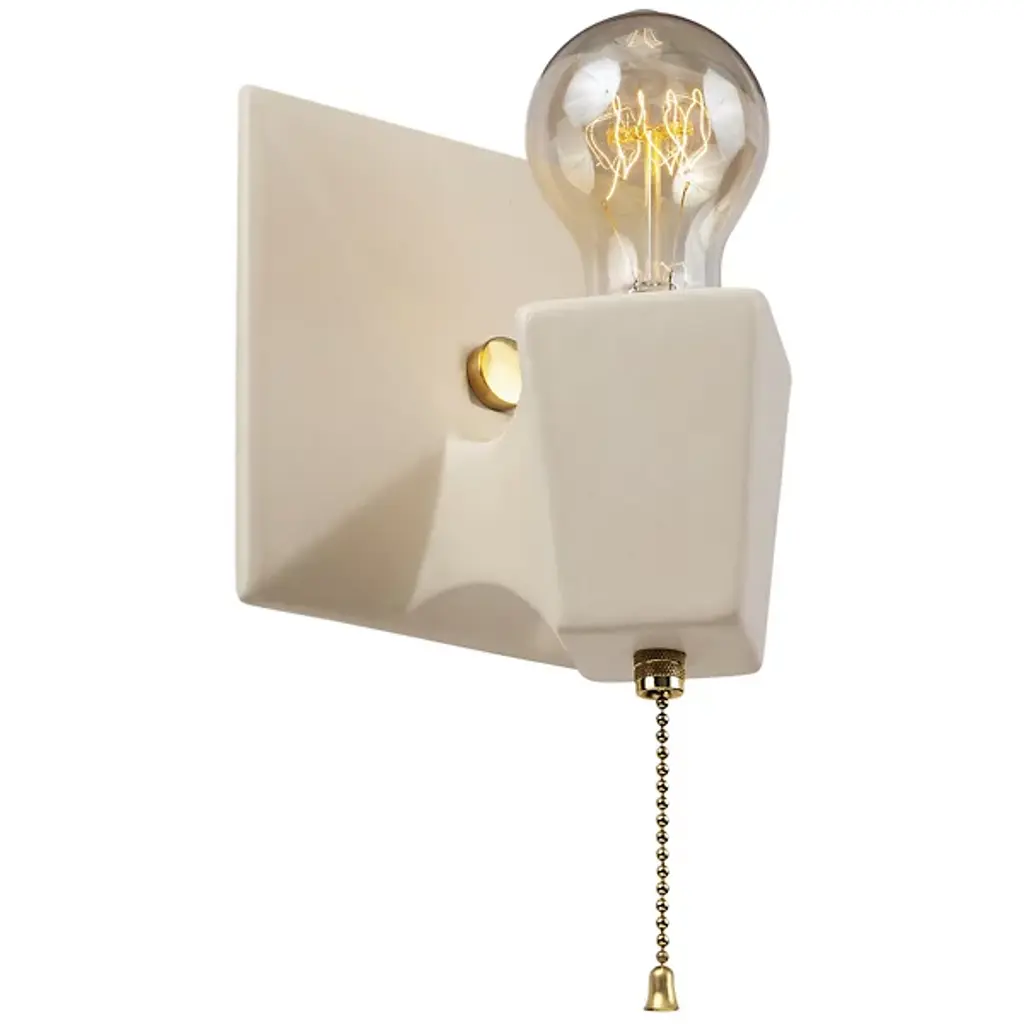 Minimalist modern lighting at its best. The Geo Wall Sconce by Justice Design Group is a petite, geometric design, made of Ceramic with a square wallplate and a tapered rectangular light holder. The chosen bulb is left fully exposed, leaving it completely free to cast a wash of ambient light all around a bathroom, bedroom or other modern interior. This wall light includes a pull chain switch, which can be removed if needed for wall switch applications.