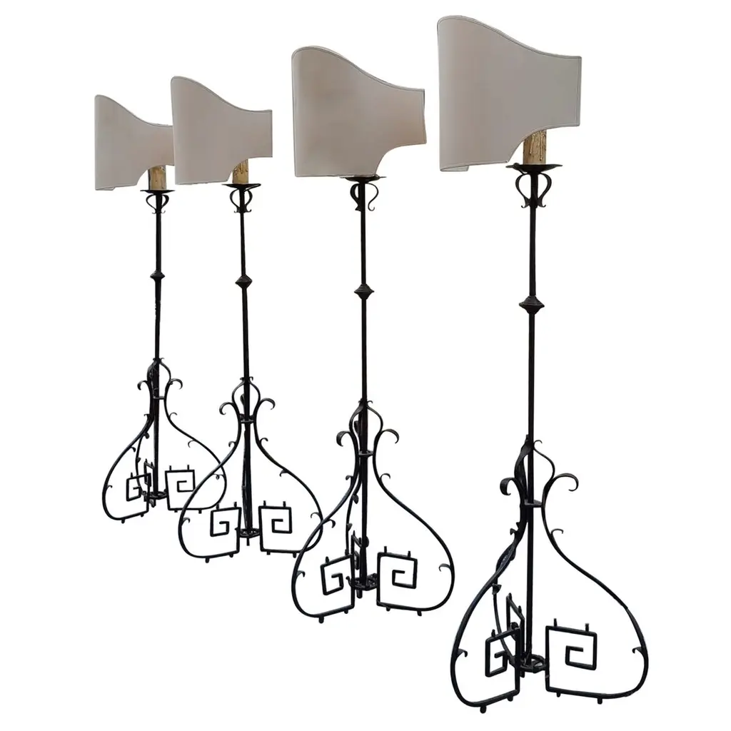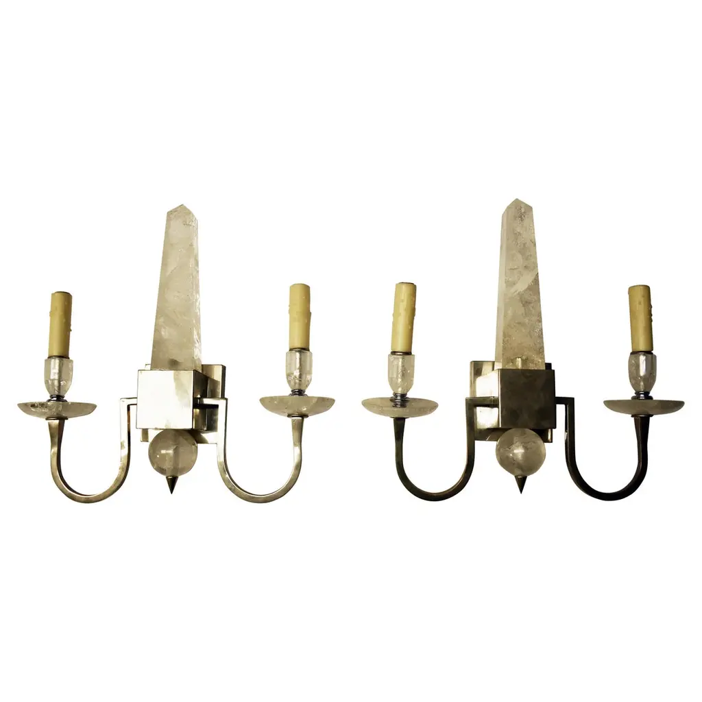 Geometric Art Deco Aluminum Lighted Wall Sconces, Set Of 4