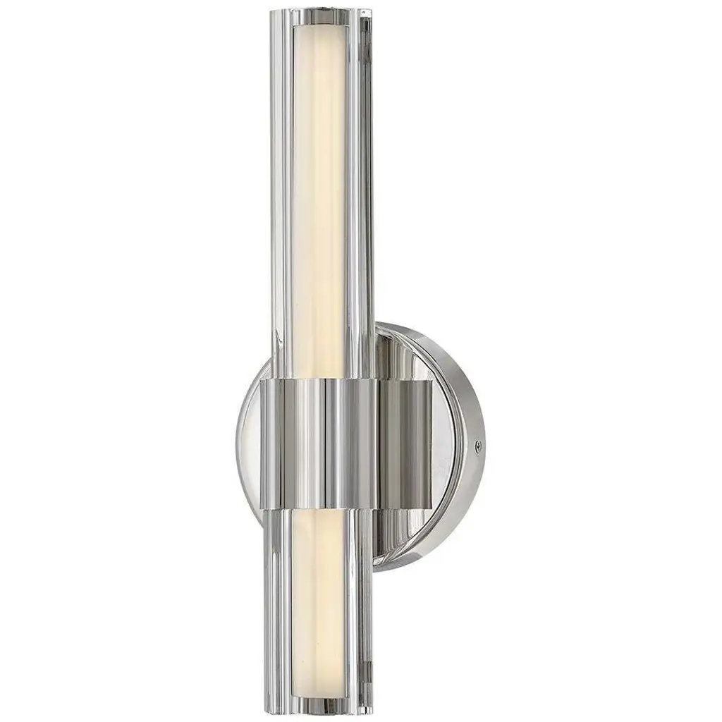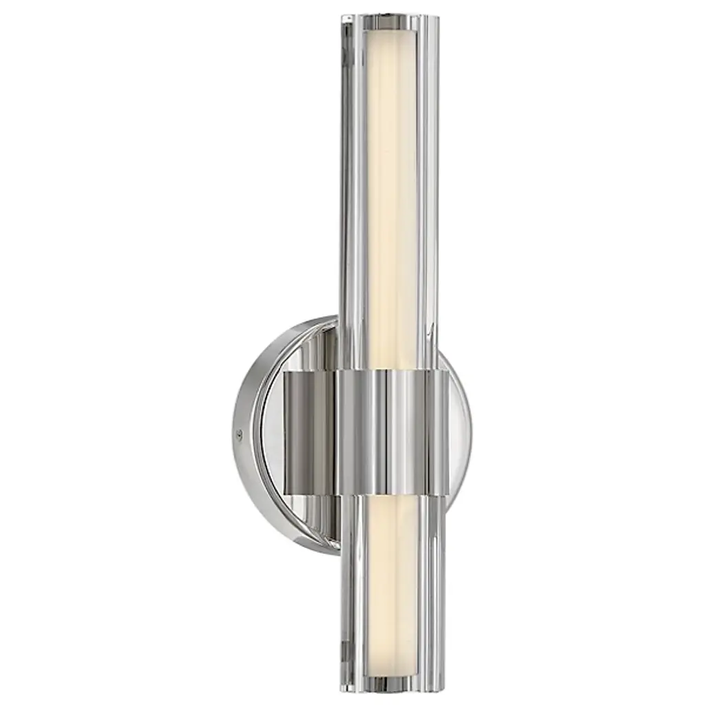 Georgettes sophisticated silhouette is enhanced by clear fluted crystal, creating a stunning fixture with bold symmetry and captivating details. A chic central cuff and back plate provide balance and contrast that effortlessly complements any space with a Black Oxide or Lacquered Brass finish.