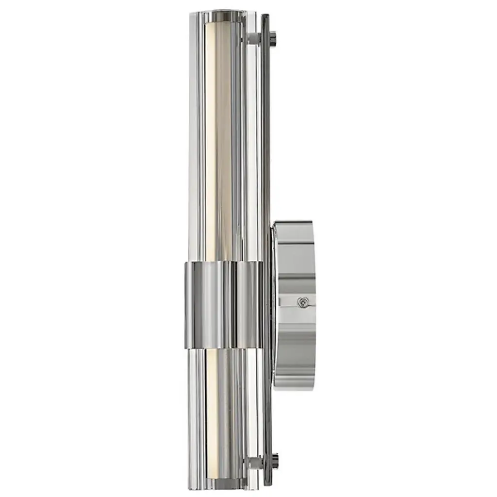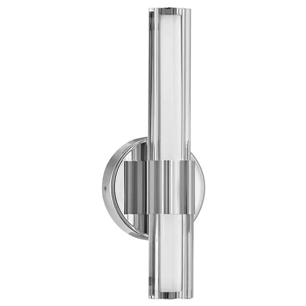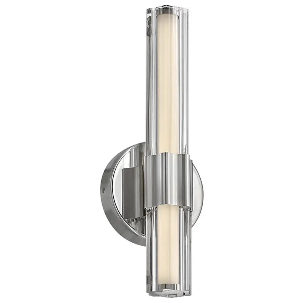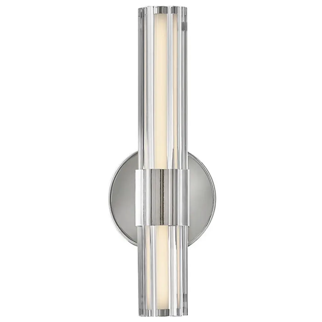 The Georgette LED Bath Wall Sconce from Hinkley breaks conventional design with its linear profile and crystal fluting. The central cuff divides the fixture into perfect symmetry, creating balance without being predictable. Light passes through the crystal, projecting delicate patterns that enhance the mood of any space. This wall sconce blends traditional elements with clean lines, making it adaptable to various décor styles. Mounted flush against the wall, it maintains a low profile while making a substantial design statement. Its hidden hardware ensures nothing distracts from its pure aesthetic appeal.