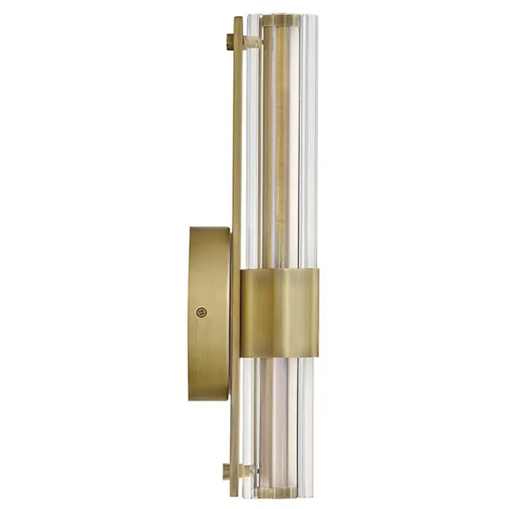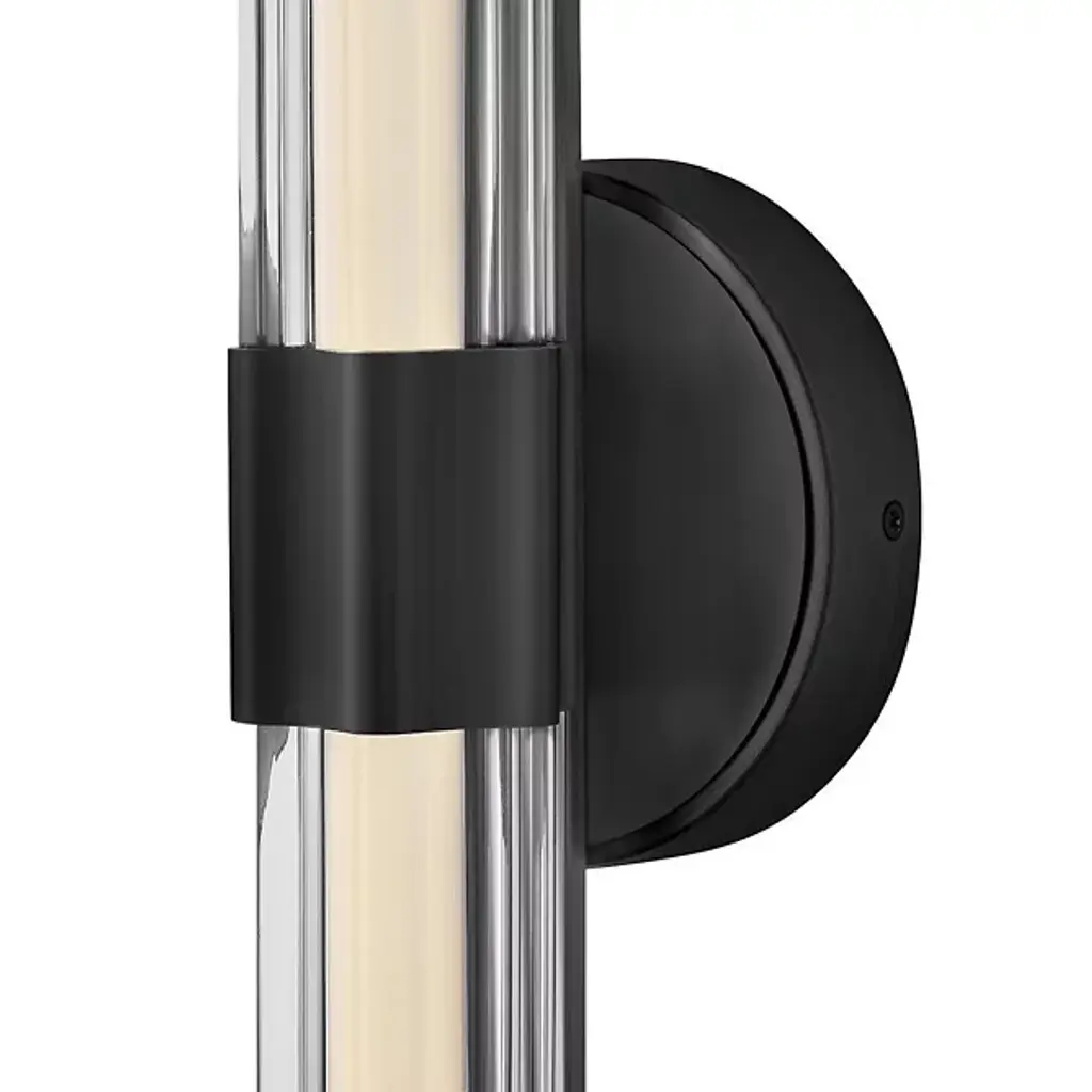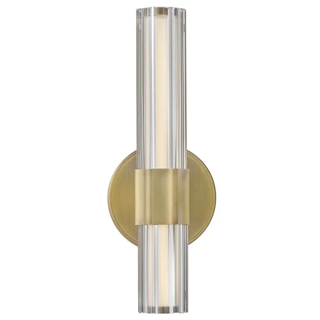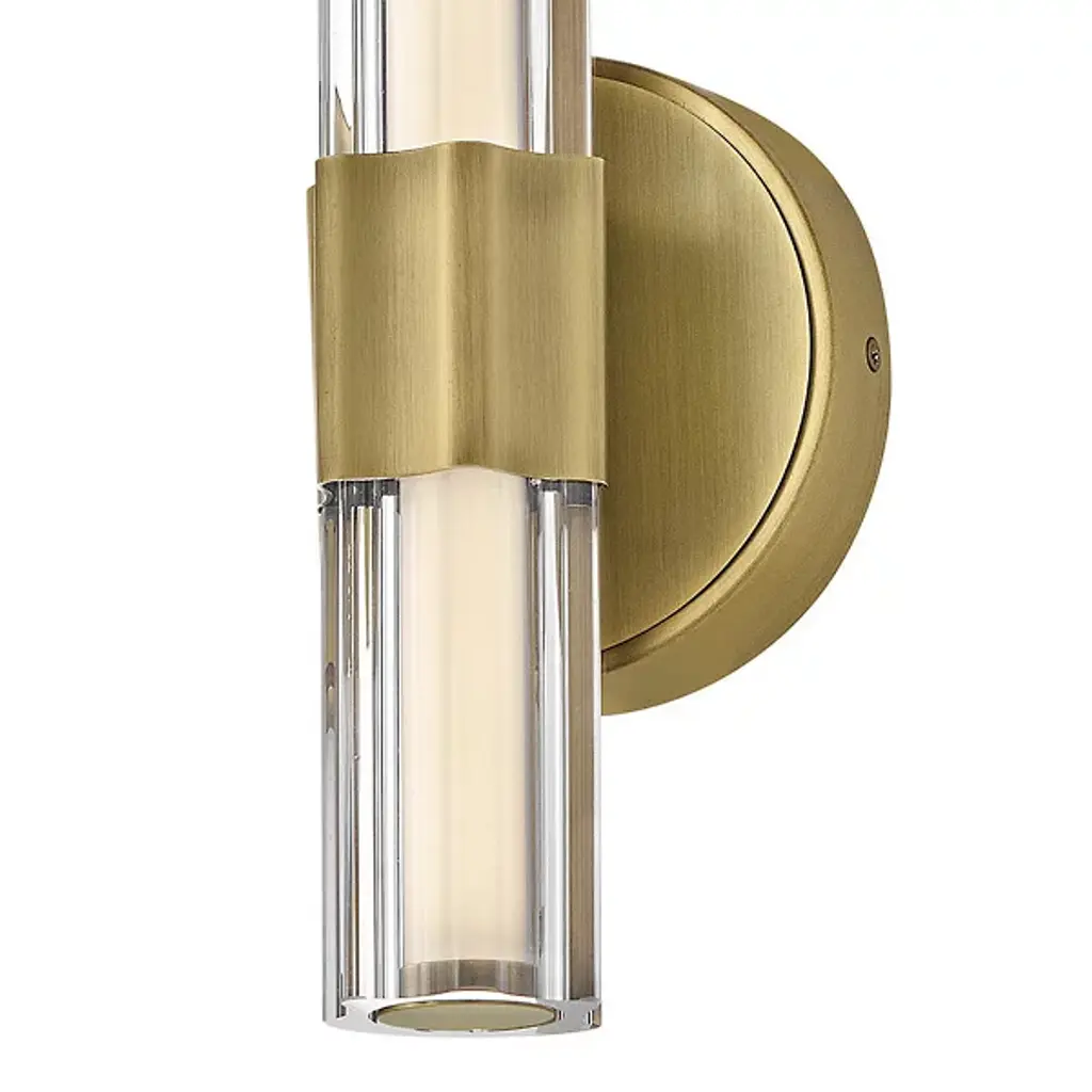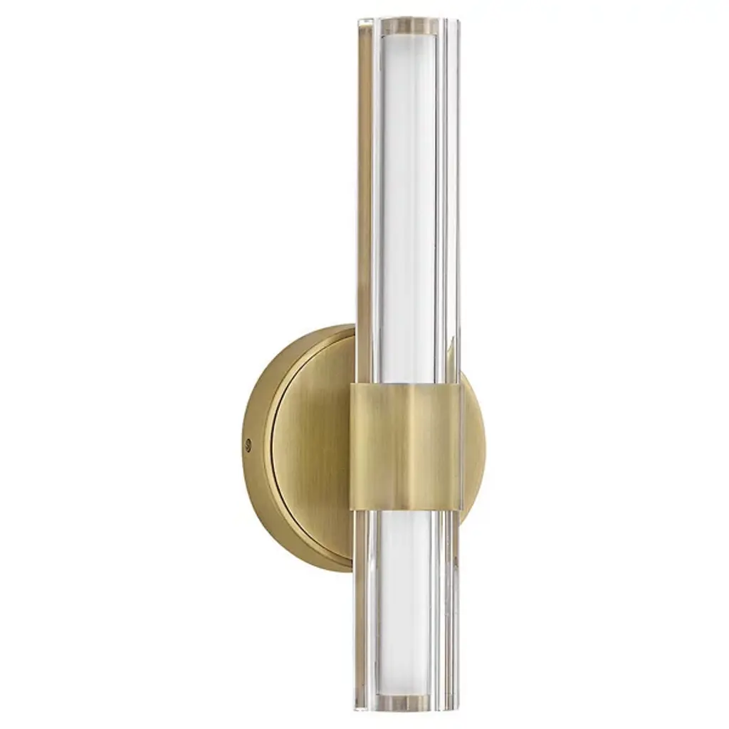 The Georgette LED Bath Wall Sconce from Hinkley breaks conventional design with its linear profile and crystal fluting. The central cuff divides the fixture into perfect symmetry, creating balance without being predictable. Light passes through the crystal, projecting delicate patterns that enhance the mood of any space. This wall sconce blends traditional elements with clean lines, making it adaptable to various décor styles. Mounted flush against the wall, it maintains a low profile while making a substantial design statement. Its hidden hardware ensures nothing distracts from its pure aesthetic appeal.