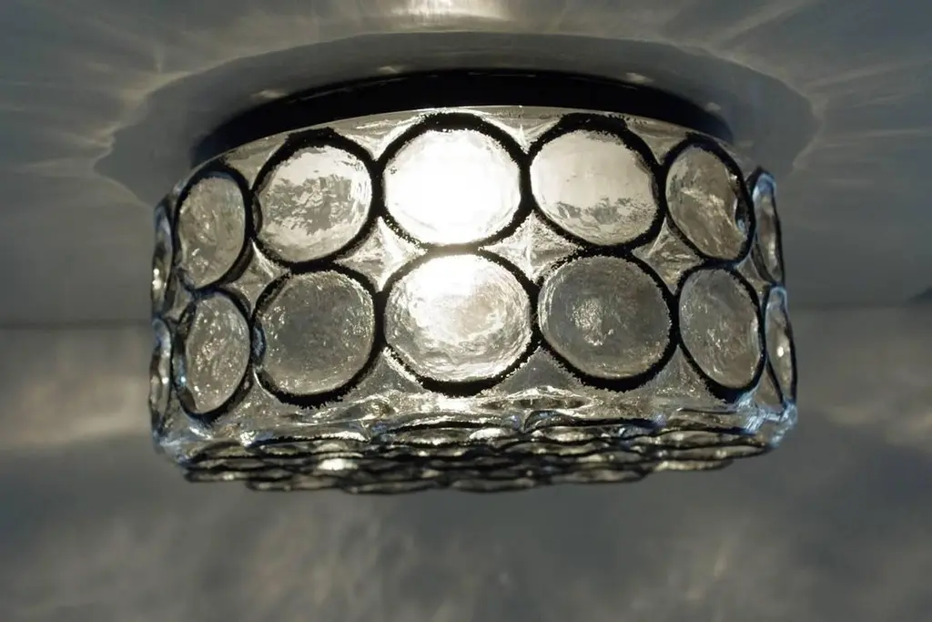 ONE of... beautiful hand blown bubble glass flushmount.Germany, 1960s.Sockets: One x E27 (US E26).