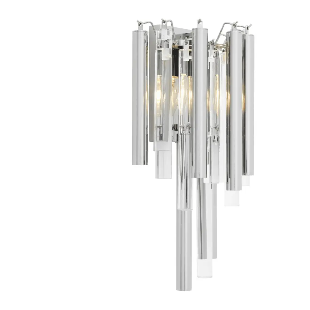 Capture the look of pure luxury with the Gigi Wall Lamp. Like a glamorous piece of jewellery, this lustrous luminary provides optimum radiance in your dÃcor. The Art Deco style fixture features a semi-circular tapered body with rods of clear glass and nickel finished metal.