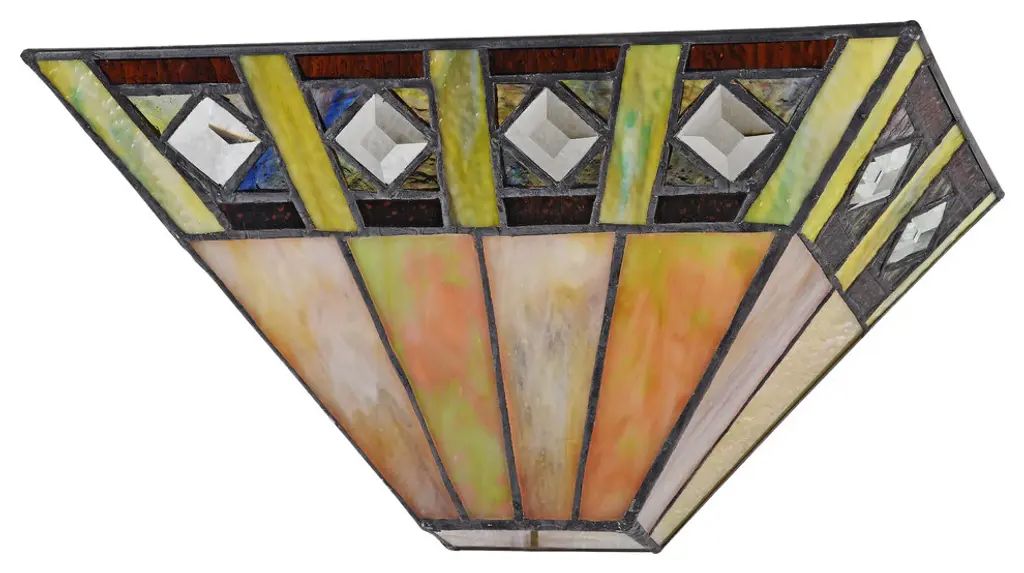 Giles, a Mission Tiffany-style 1 light wall sconce features an elegant light-green shade, sure shine some beautiful color to complement your home with its black finish. Hand crafted from over 60 pieces of art glass and 8 beads that will add color and beauty to any space. Main colors are green, orange and yellow. Handcrafted using the same techniques that were developed by Louis Comfort Tiffany in the early 1900s, this beautiful Tiffany-style piece contains hand-cut pieces of stained glass, each wrapped in fine copper foil.(1) 60 Watt max E26 Type A Bulb (not included)Hardwired, Wall Outlet Switch68 pieces glass cut, 8 glass beadsUp lightIndoor SettingSince these are hand crafted products, the exact color of glass pieces may vary. Colors of the glass will appear darker and less vibrant when not illuminated. Handmade glass will vary from one piece to the other; glass made at different times will also vary. Light bulbs used in lamps or ambient lighting may affect the appearance of the products. Stained glass product has been protected with mineral oil as part of the finishing process. Please use a soft dry cloth to remove any excess oil.