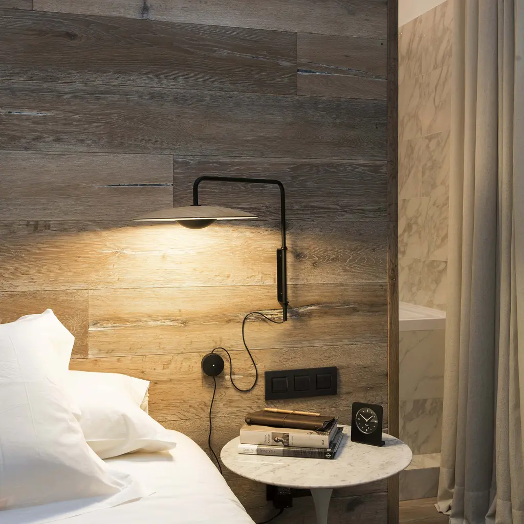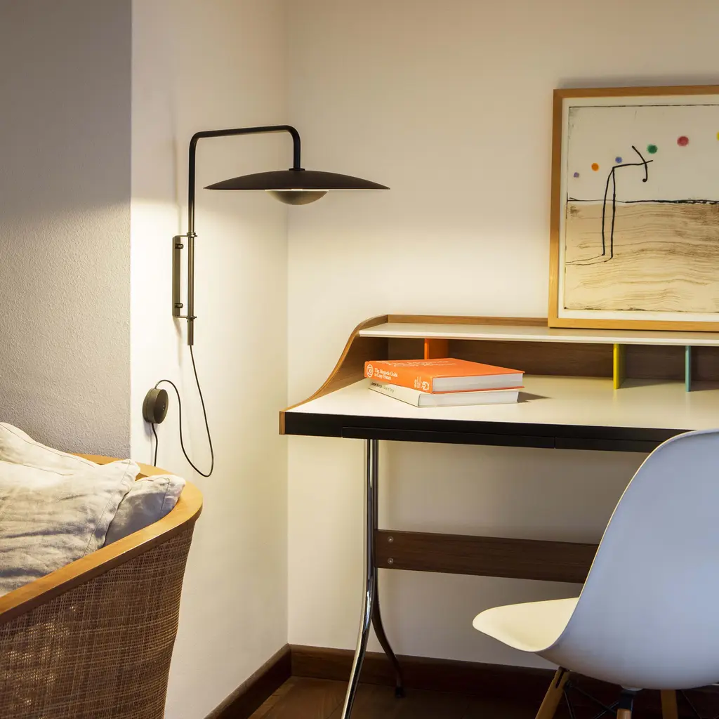 Experience the warm and brilliant light of the Ginger LED Wall Light from Marset. Inspired by the iconic cymbals of famed drummer Ginger Baker, its ultra-thin shade and special optics amplify the LED light, while the adjustable metal arm allows for customizable lighting. A stylish and practical addition to any bedside or cozy reading nook. Highlights