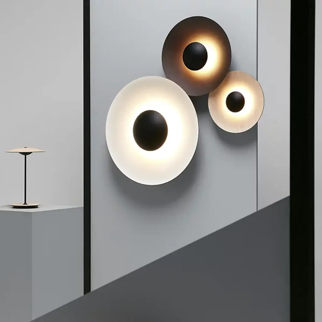 A complete illumination. The Ginger LED Wall Sconce by Marset infuses a sculptural and contemporary allure to living spaces, bedrooms, or hallways. Wood, paper, and resin are pressed together under high pressure to create a circular structure with a curved center. A metal cup at the front conceals an integrated LED light source to deliver warm, glare-free light that is reflected on the laminated structure to create an eye-catching lighting experience.